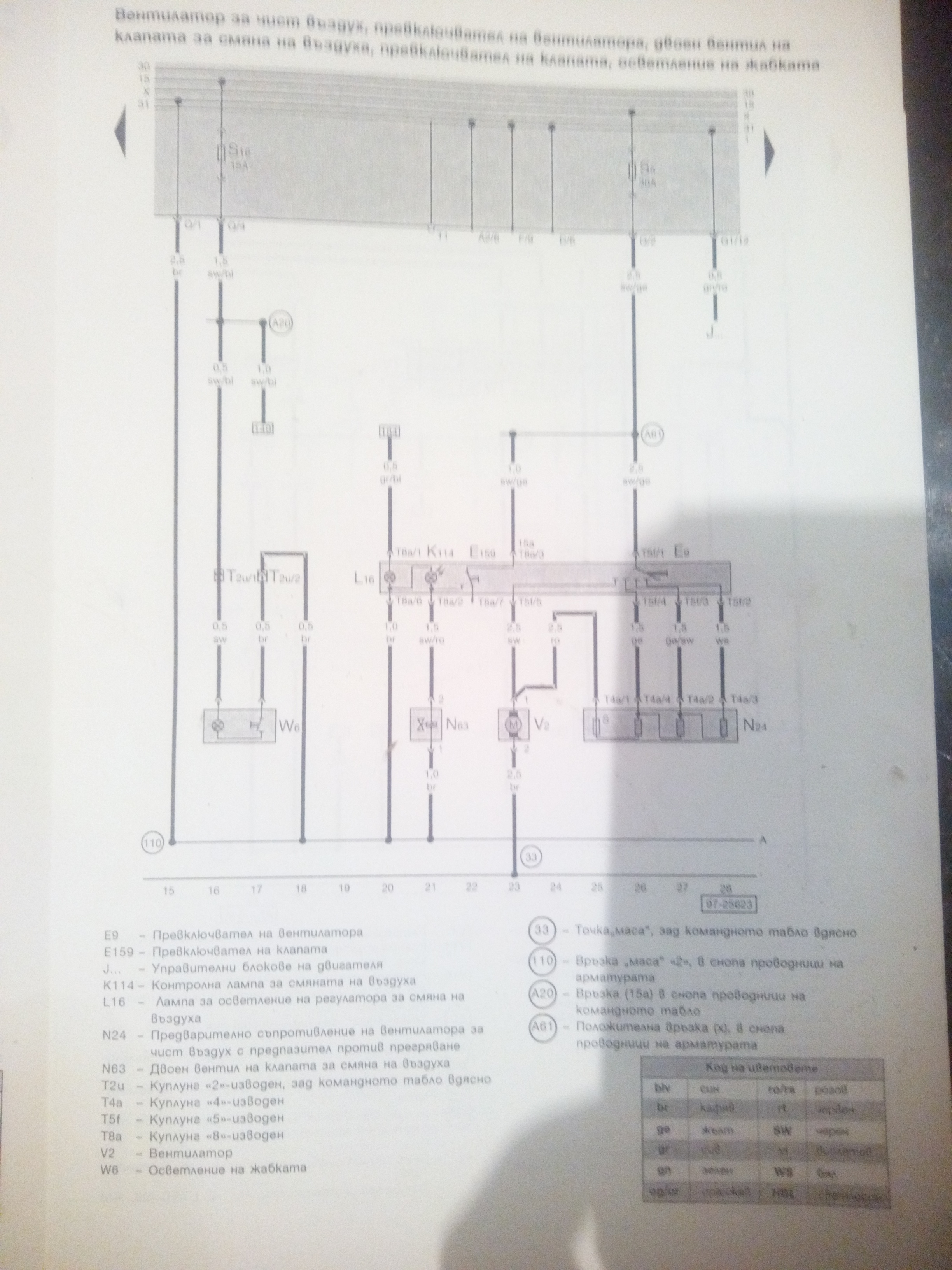 ако е след 1999 септември има и оранжево червен; оранжево кафяв допълнително. това са кабелите който подават сигнал на уредите със ненормални показания на таблото Ви. Буксата е 12 пина. след като таблото е минало диагностика , остава само некоректи връзки.