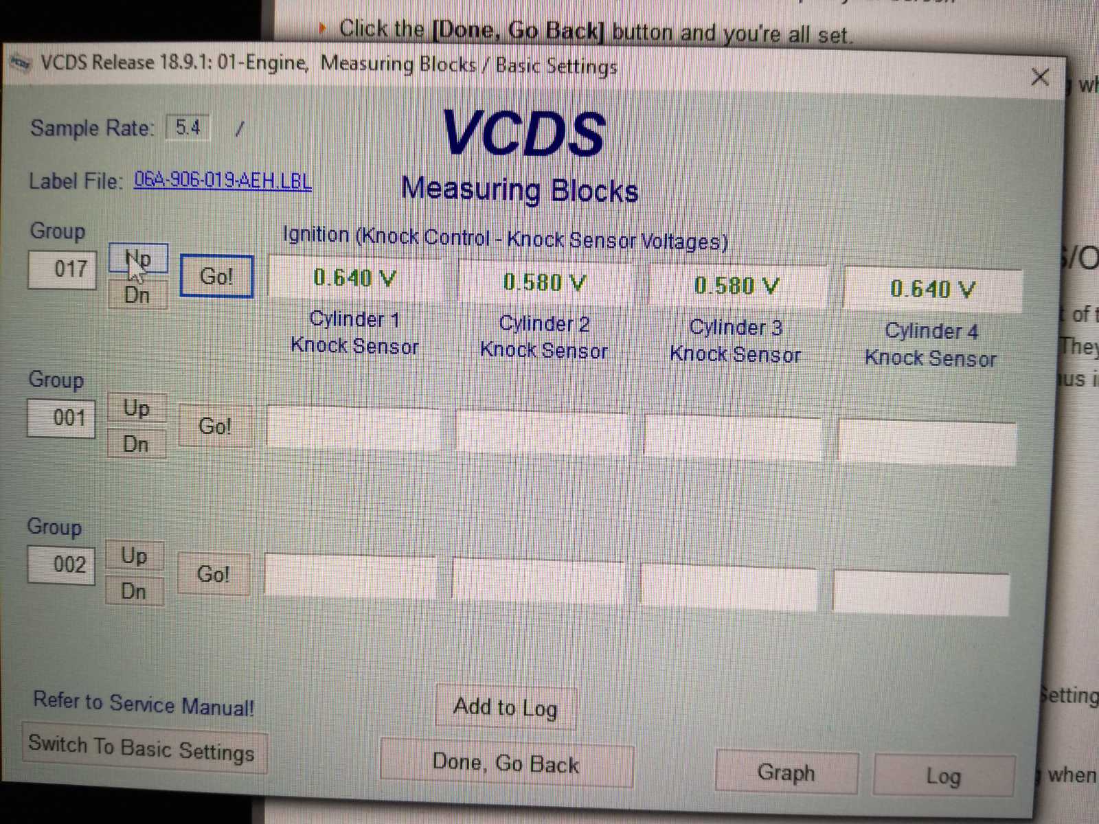 Продължих диагностика VCDS и четене на данни в реално време и това ми направи впечатление за разминаване на данните - прикачени снимки тук, в покой и натоварване при 3000 об. мин.