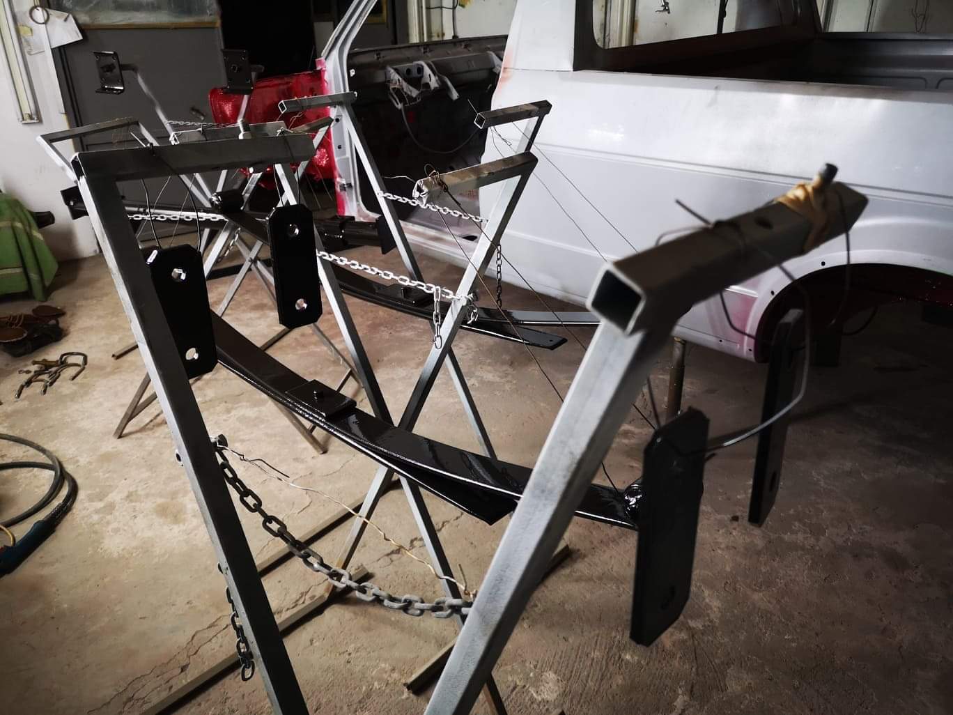 Задните ресори са готови, получи се много интересен цвят, на нормална светлина е черен, на светло има друг нюанс