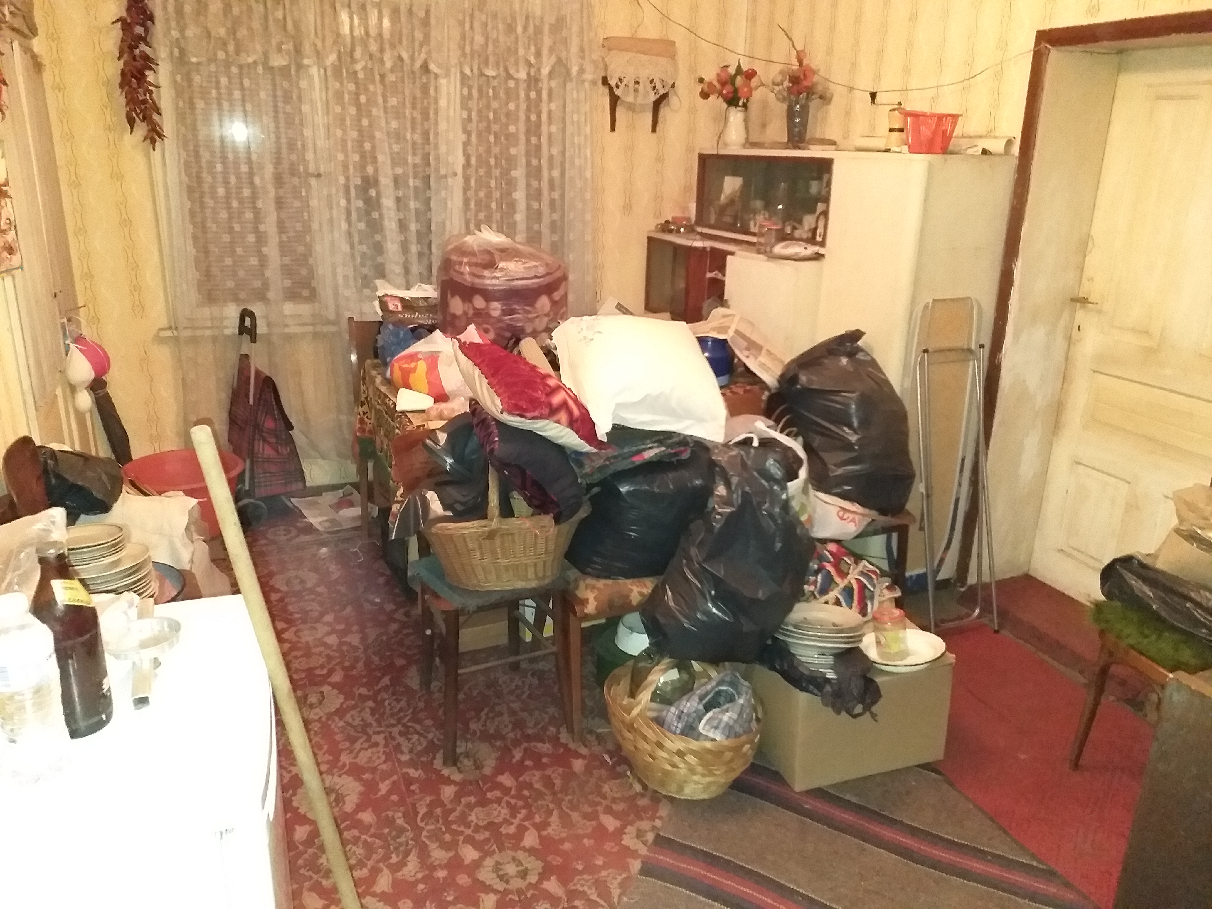 За 4 дни успях да изчистя 2 спални, кухнята, банята и едното антре плюс малка част от 3тата спалня. 4 ремаркета за трактор изхвърлих....