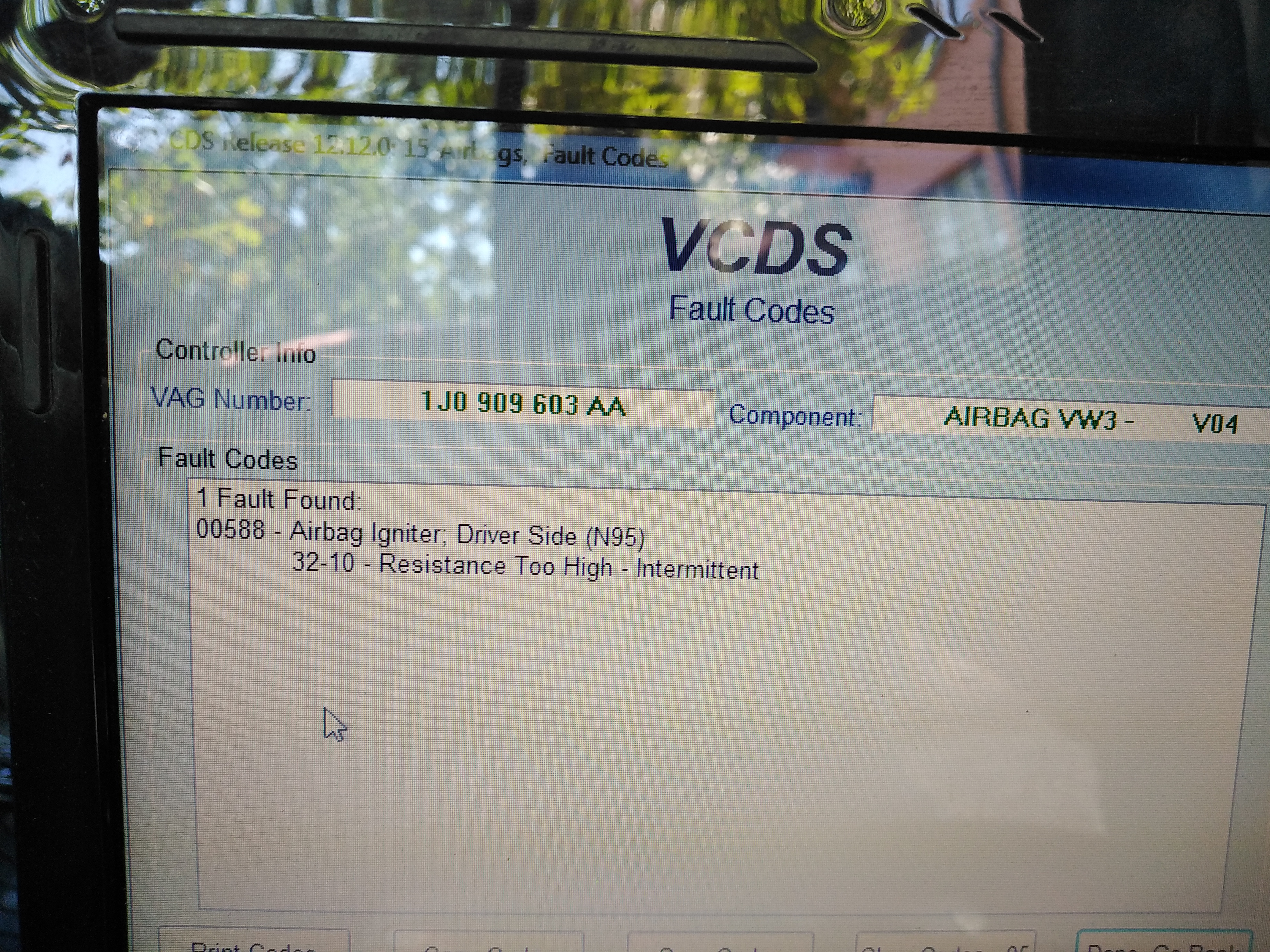 Здравейте да добавя само днес свалих работещ лентов кабел от на един приятел от колата сложих го на моята заедно с балона и лампата продължи да си свети като на ваг кома показа 00588- 32-00 незнам вече къде да търся проблема мисля си за патрона на колана или буксите.