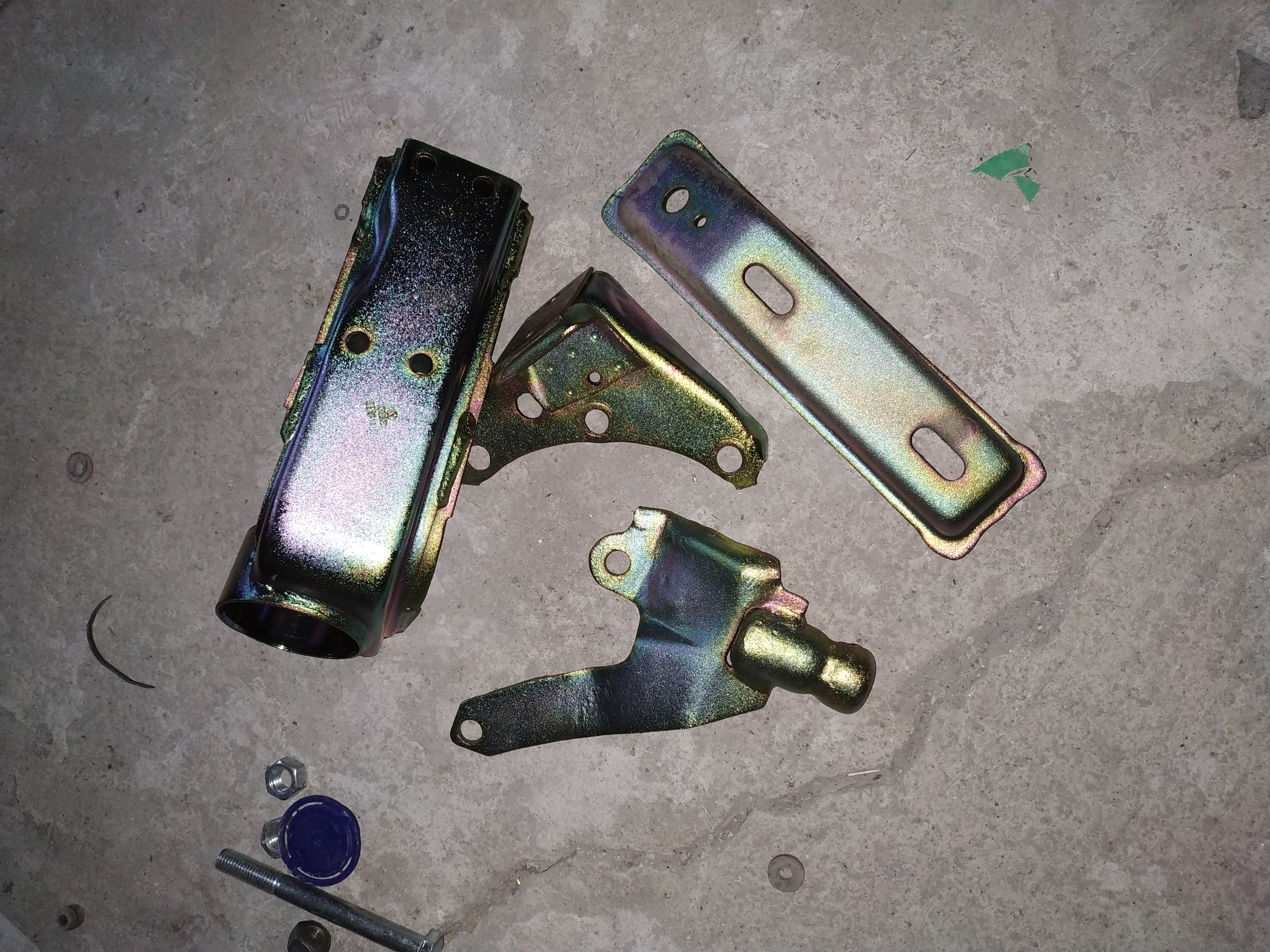 дойдоха още малко части от поцинковане, лапите за двигателя, ушите за рейката , започваме да редим обратно :)