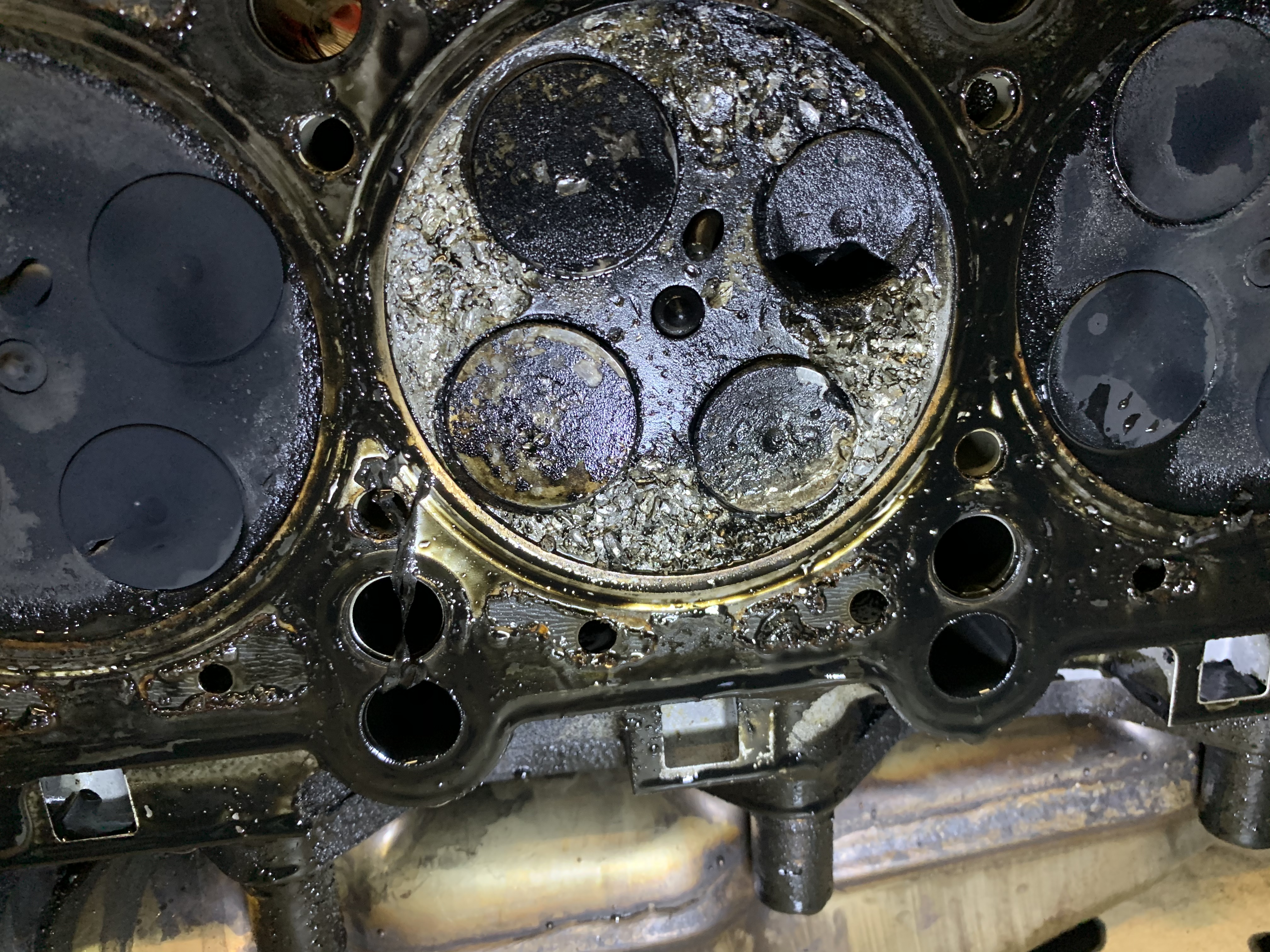 Както писах по-горе, проблема се оказа, точно това. Моя съвет е или да дириш друг мотор, или този трябва да се ремонтира основно и както трябва. Не забравяй, че вече в метала е възможно да има микропукнатини, които при спектрален анализ, ще се видят много добре. Това се отнася и за глава и за бутална група. Задължително, трябва да се измерят и прегледат цилиндрите за износване, драскотини или пукнатини. Ако всичко там е добре, проверка на бутала, и замяната им заедно със сегменти е най-добро решение. Проверка на глава, но не само визуално, а с техника, защото там ще се явят проблеми. Дори да не виждаш след старателно почистване на всичко, пукнатините, те ще се появят в последствие след известна работа на мотора и тогава пак ще доведат до сериозна повреда на агрегата. Затова или го направи, както пише по книгите или по-добре друг. И най-важното след всичко това е дюзите да се оправят, защото ще има повторение на филма.