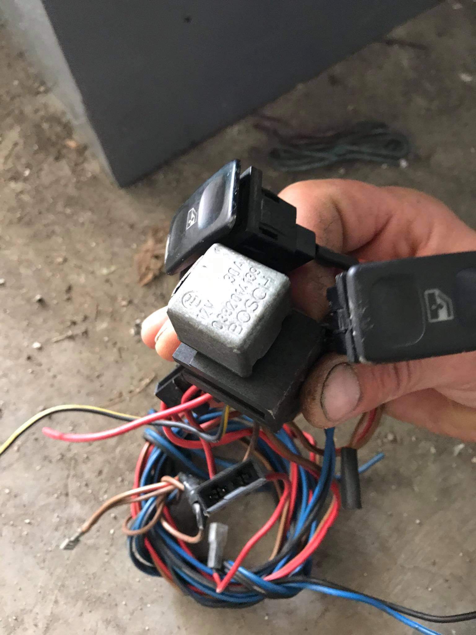 Приятел това не оригинална инсталация и машинката е фира с жилата . Имаш два начина да си купиш оригиналната инсталация която през копчетата минава силовия ток и е проблем за 30г копчета, там кабелите са още повече . Д-р начин е с релета по 2 на стъкло и разтоварваш копчетата не е сложно ако имаш елементарни познания по електротехника