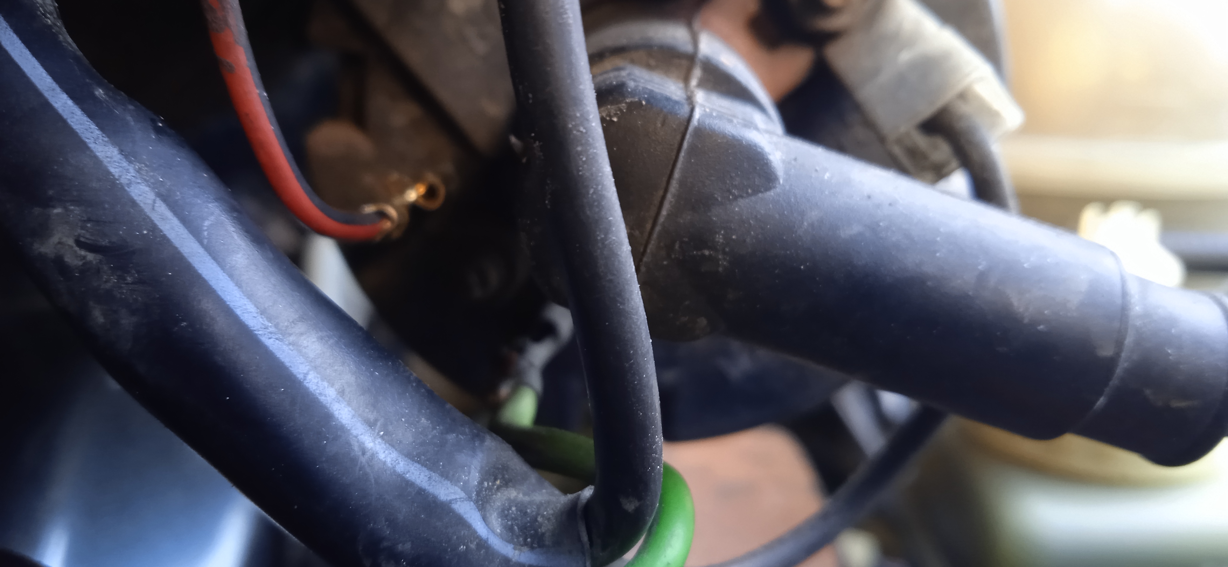 Свържи червен+черно кабела към свободната клема на двойната букса (на втората клема е вързан зеления кабел) към бубината. Намира се зад високоволтовия кабел и не я виждаш в момента.