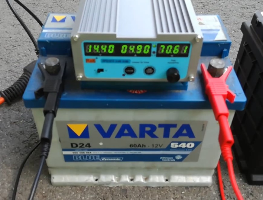 Но намерих друго видео, където може да се види подобно нещо - 14,4V и два различни зарядни тока - 6,5А (4:21) и 4,9А (6:03):