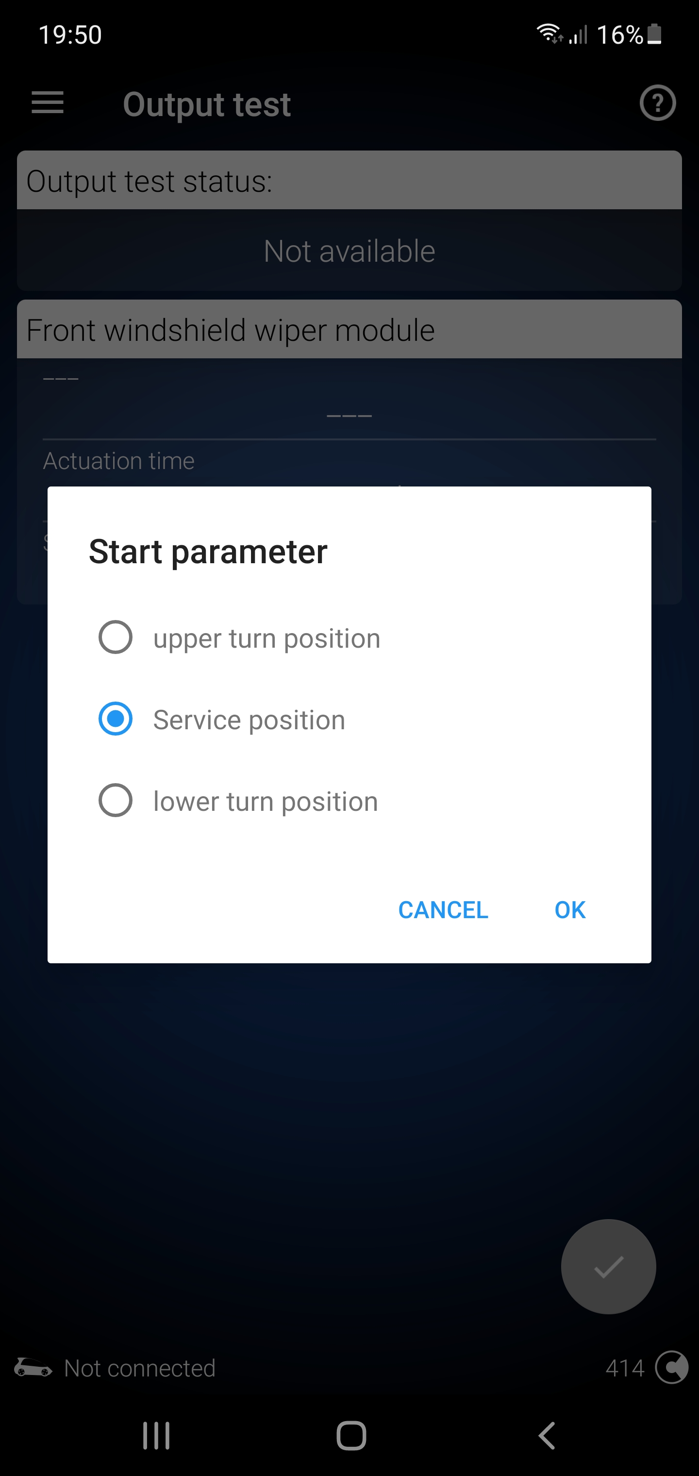 Central electronics -> Output test -> Front windshield wiper module -> Start parameter