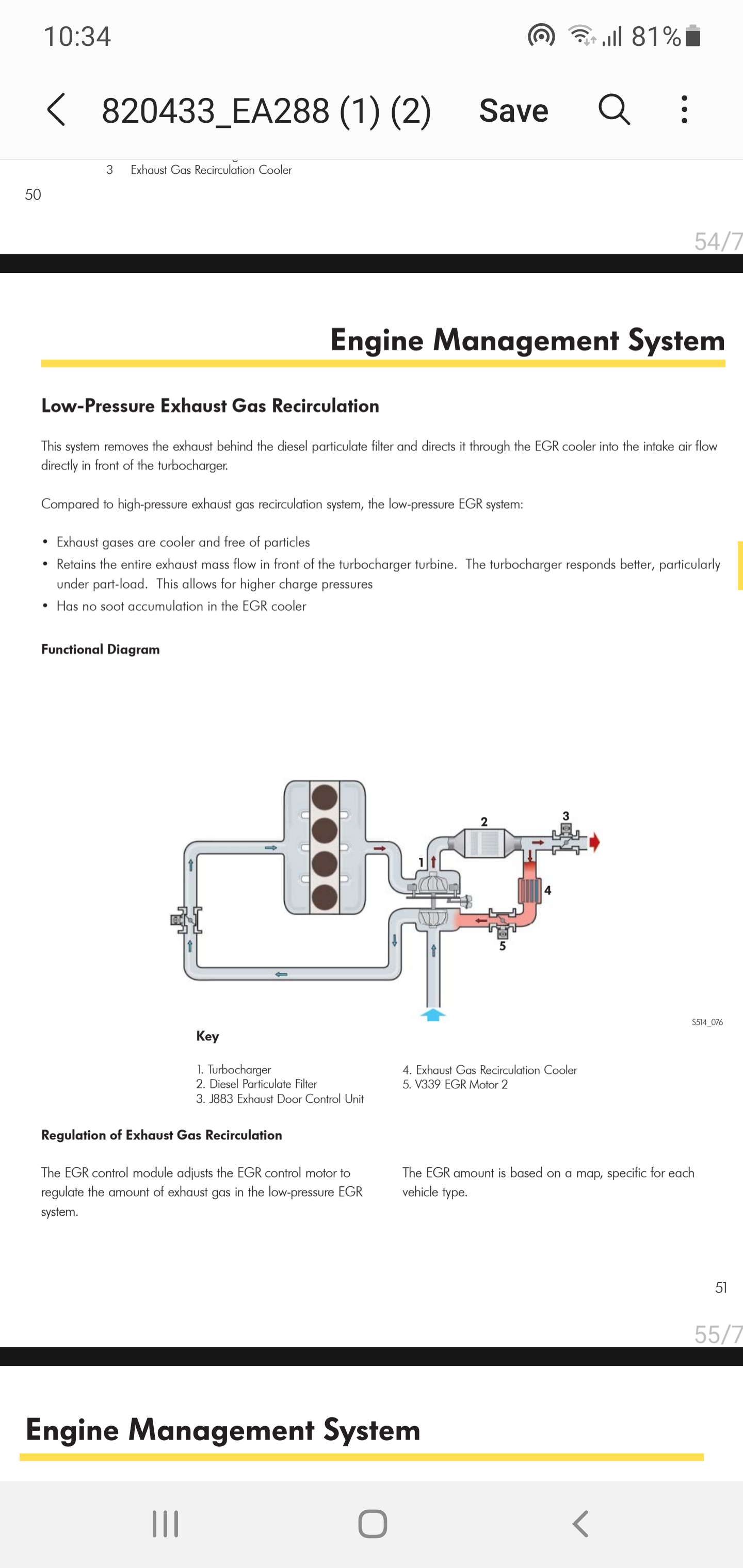 При моя случай - 3.0 tdi с ШИМ управление на вакуумен клапан, който от своя страна плавно отваря и затваря ЕГР клапана, работи постоянно в целия диапазон - от палене до една минута след гасене, с цел да изстине отворен, за да не заклини в отвора. Най силно затваря при спиране с двигател (надолнище). Това го установих със светодиод, свързан със захранването на клапана и изкаран в купето за наблюдение. Имам и VCDS, но не съм правил графика с живи данни, факт.