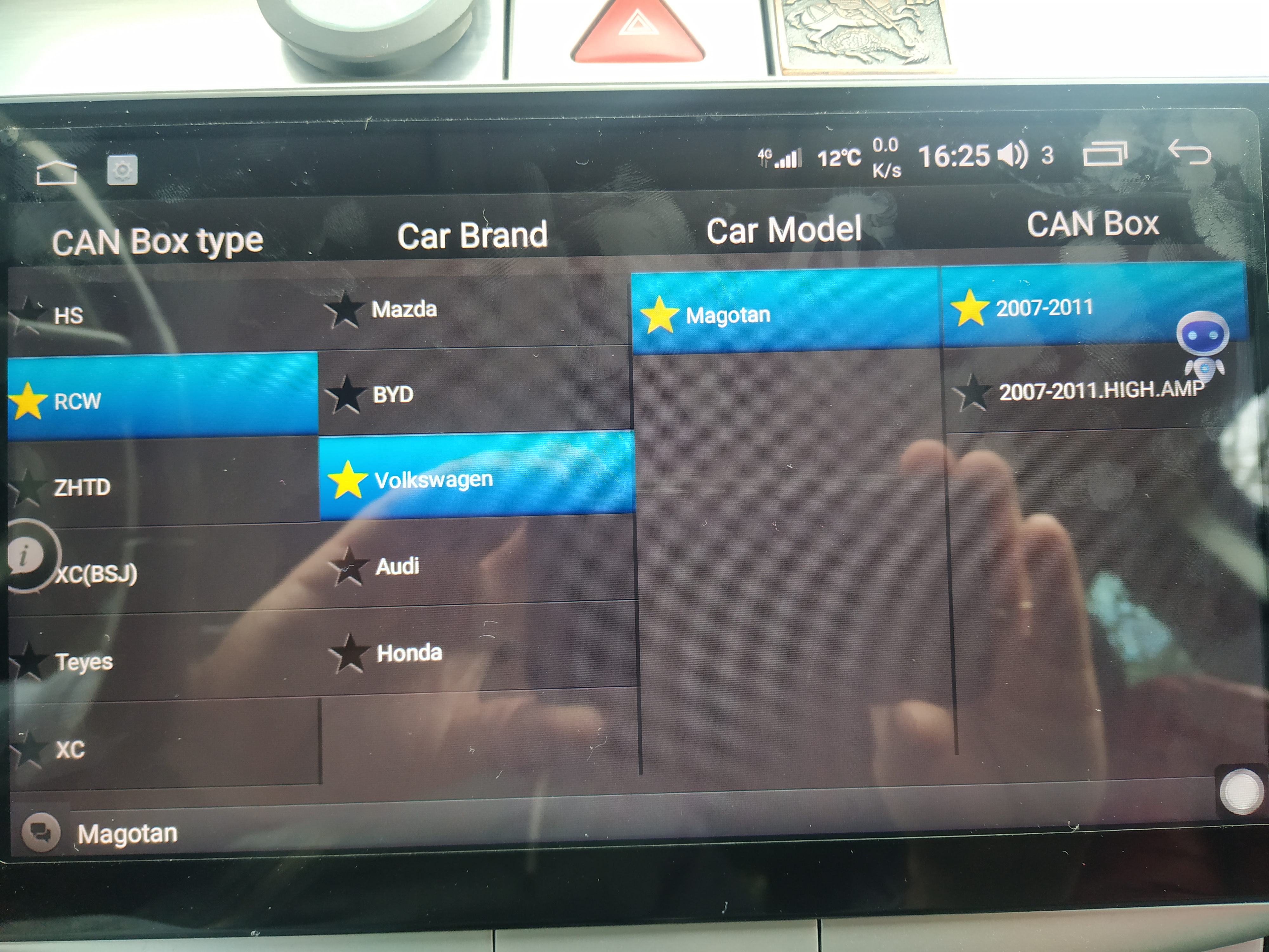 Не ти е нагласен канбус протокола във Factory settings. Нагласи го за VW PASSAT_MAGOTAN_REISE и ще работи.
