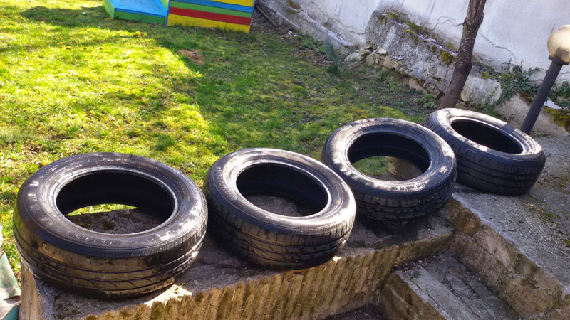Обмислям и някакви забавления с гуми да измайсторим. Имам поне 15 гуми. Събирам идеи.