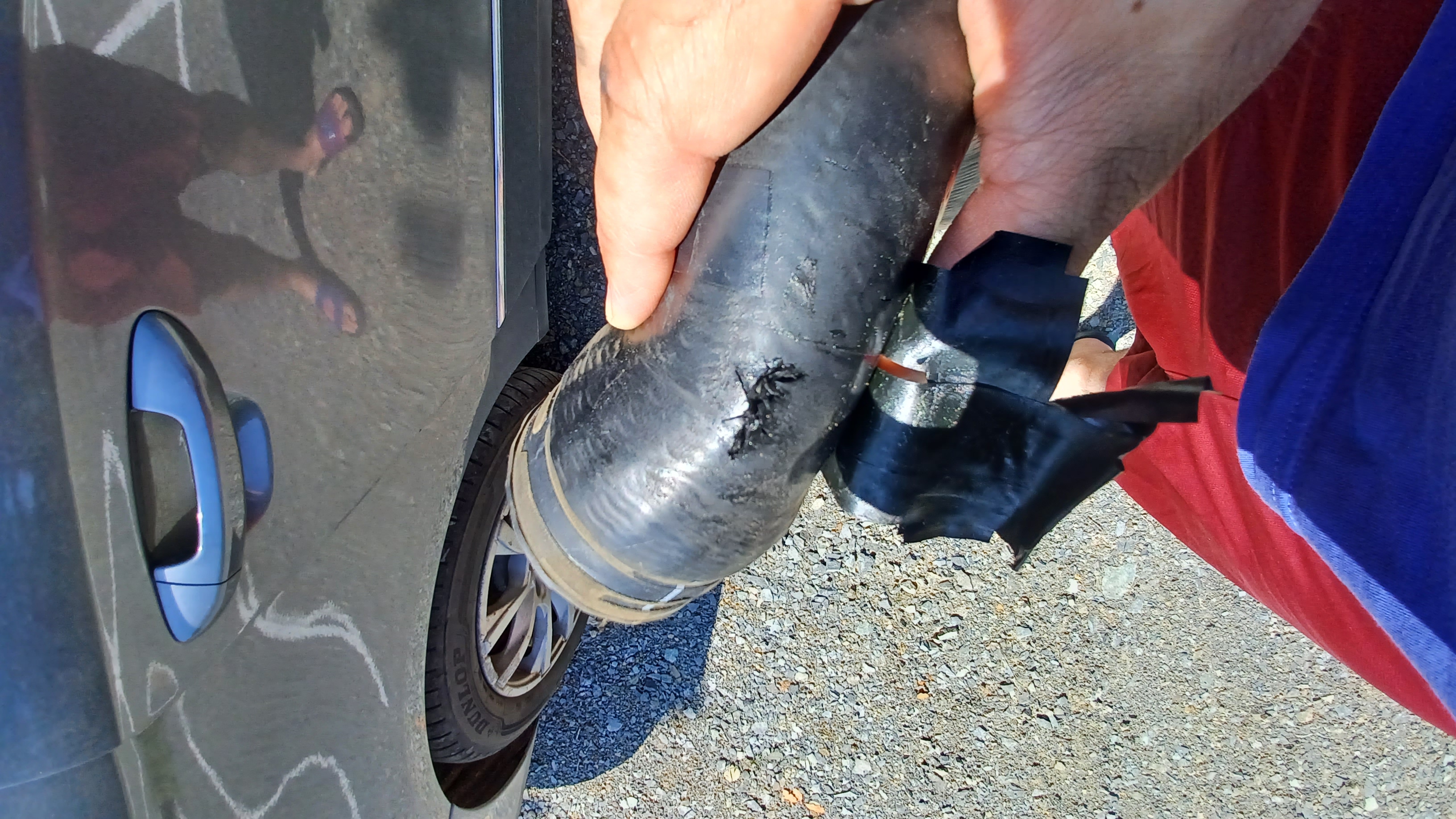 Вчера колата взе да ми губи мощност особено на изкачване. Светна ми жълтата пружина на таблото. Като вдигнах капака видях че има дупка на тръбата от снимката. Увих я с изолирбант, но не съм карал още да видя дали е ОК, би трябвало да е. Естествено, трябва да поръчам нова тръба, но как да разбера точно номер или да я обясня на някой магазин?