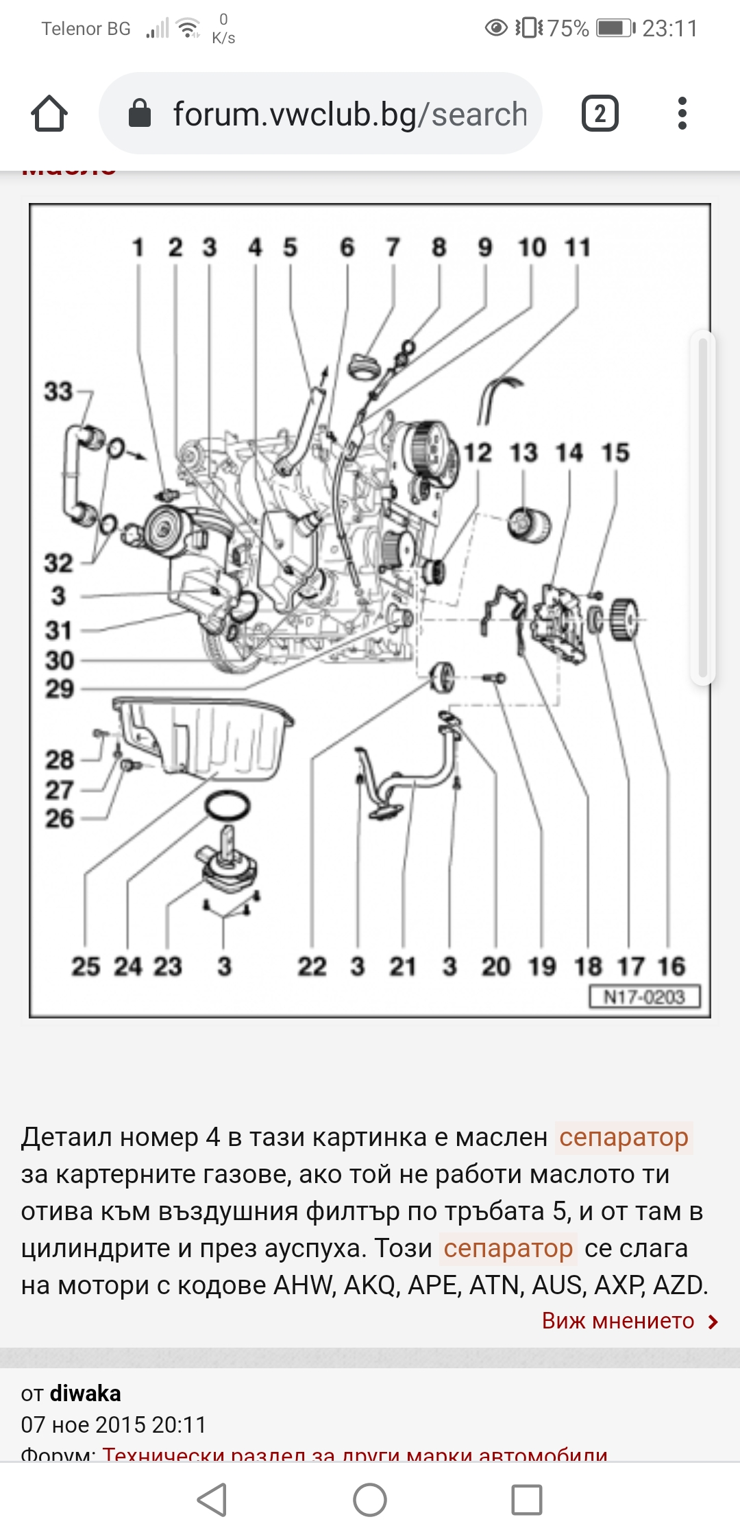 Чукането изчезна пще след смяната на биелните лагери. След изминатите 1000км и доналиването от моя страна на маслото започна да работи на тези три цилиндъра и да духа през щеката и капачката. На едната снимка със схемата се вижда маслен сепаратор, но за други мотори.. А при Akl къде може да е..