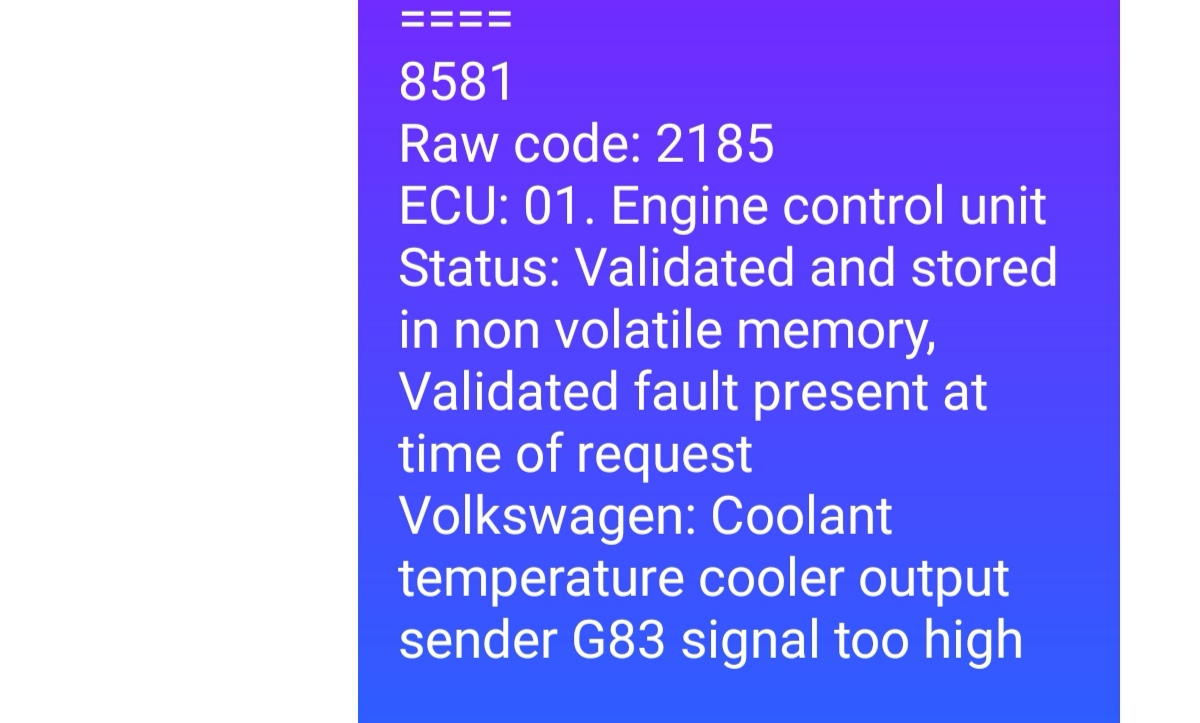 Volkswagen: Coolant temperature cooler output sender G83 signal too high