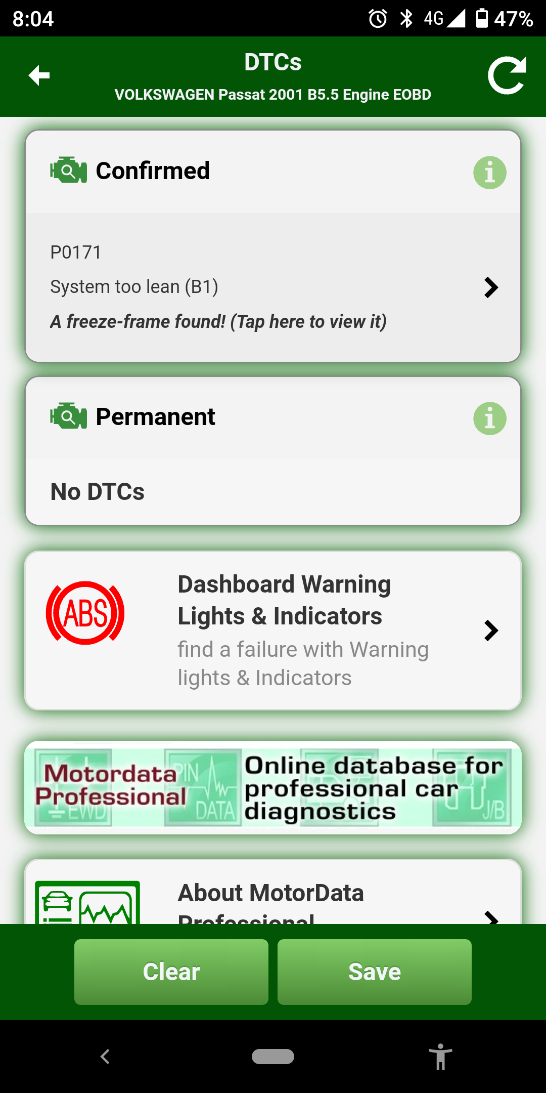 изкара грешката за бедна смес "P0171 System too lean B1".