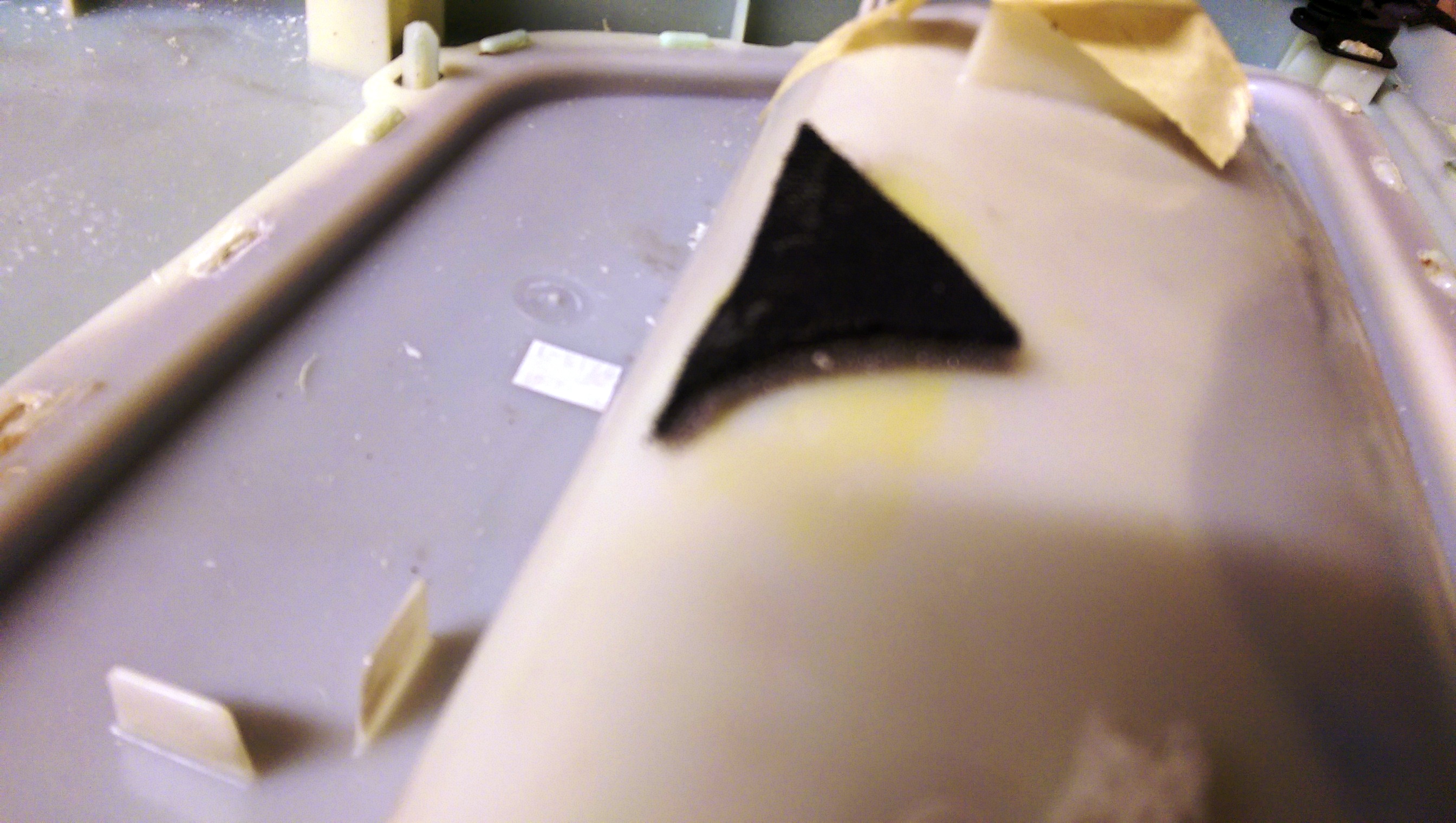 Така изглежда почистената пластмаса, отстранил съм само глинообразната червена маса, остатъци от стария дунапрен.