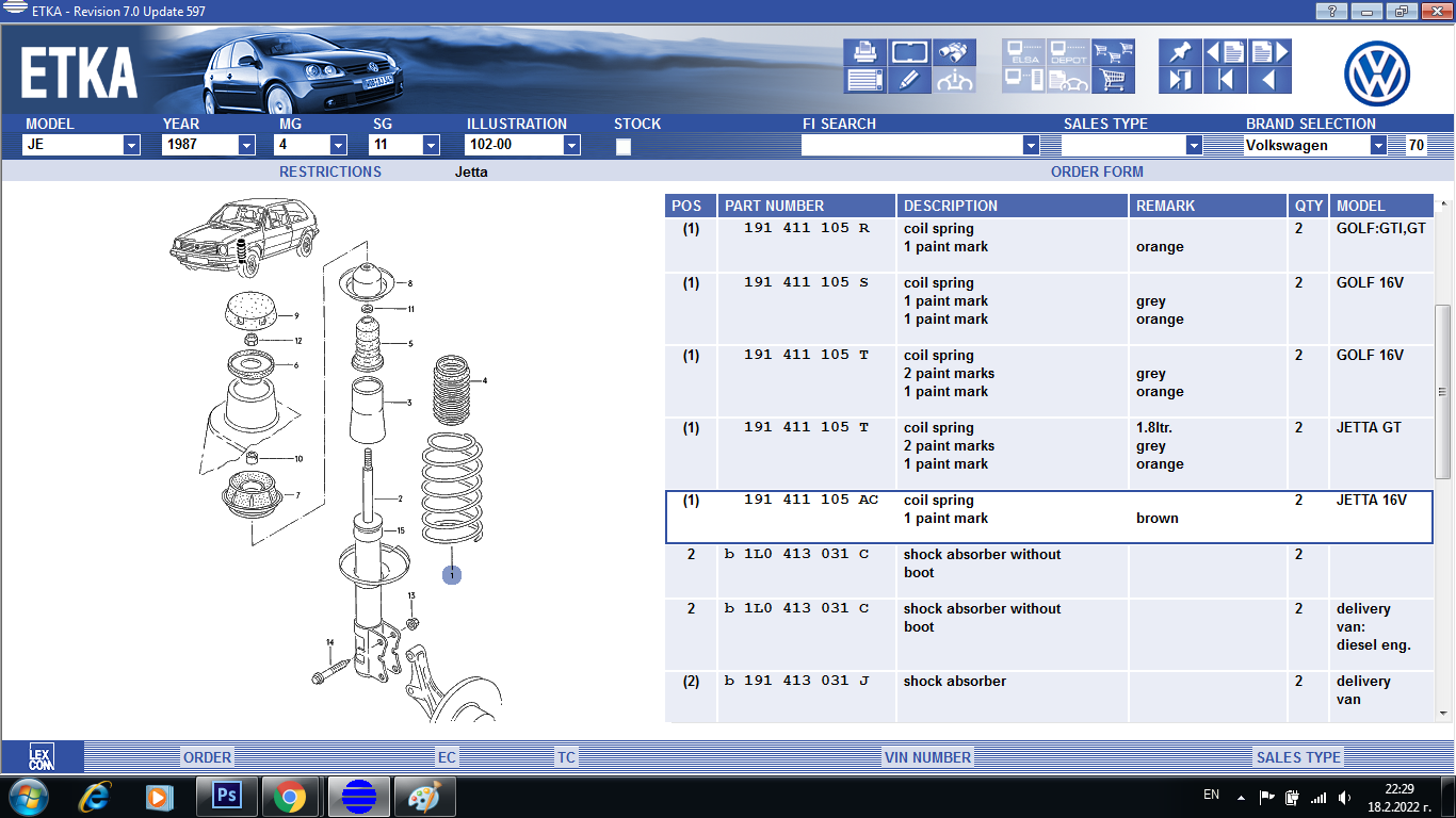 Задна пружина: 191 511 115 A (два зелени маркера)
