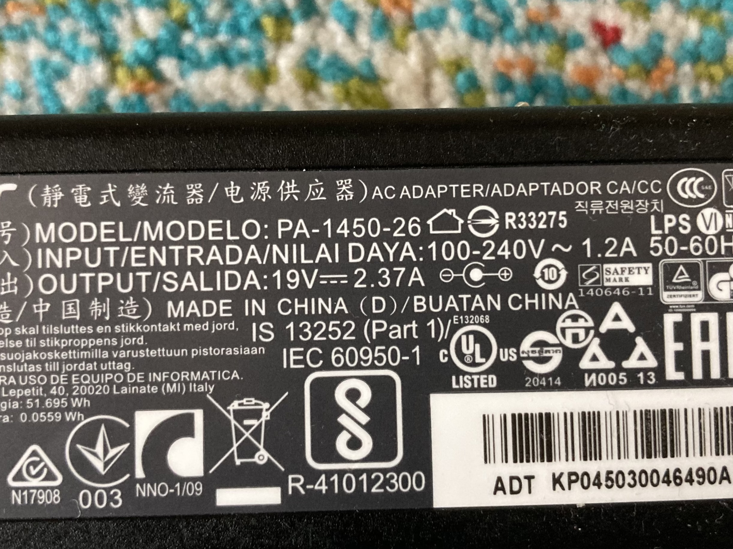 Няма как да влизат 100-220V на 1.2 ампера, а да вади 45 вата на изхода. КПД-то на тия зарядни обикновено гравитира около 85-95 процента. Та това повече от 60 вата няма да харчи.