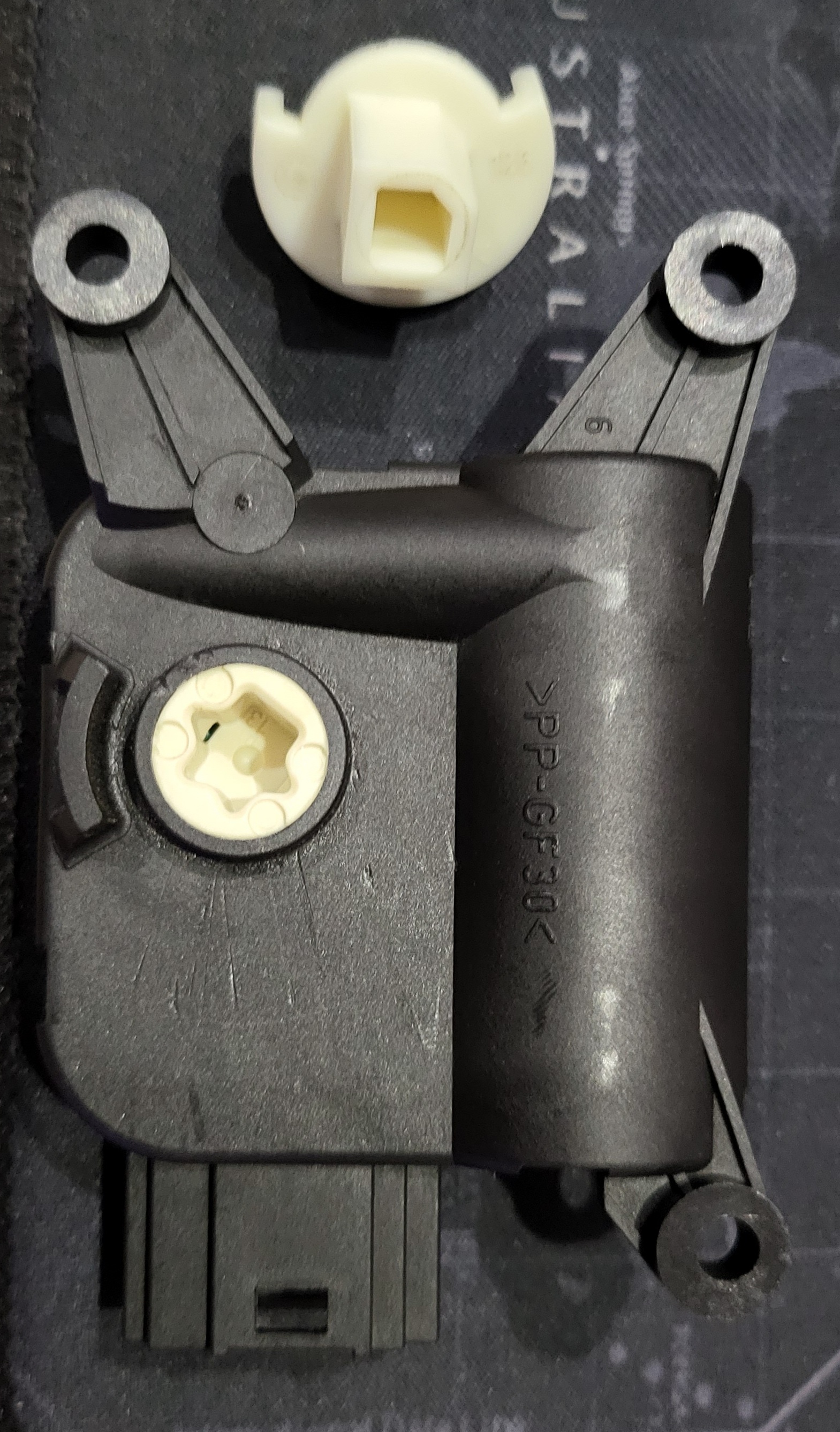 Колата е 1.9 tdi 105 коня BLS 2006 и има две моторчета за контрол на входния поток - външен въздух и въздух от купето. Следните 3 снимки са на проблемния. Едната ос е пробила корпуса и също и липсват малко зъбчатки.