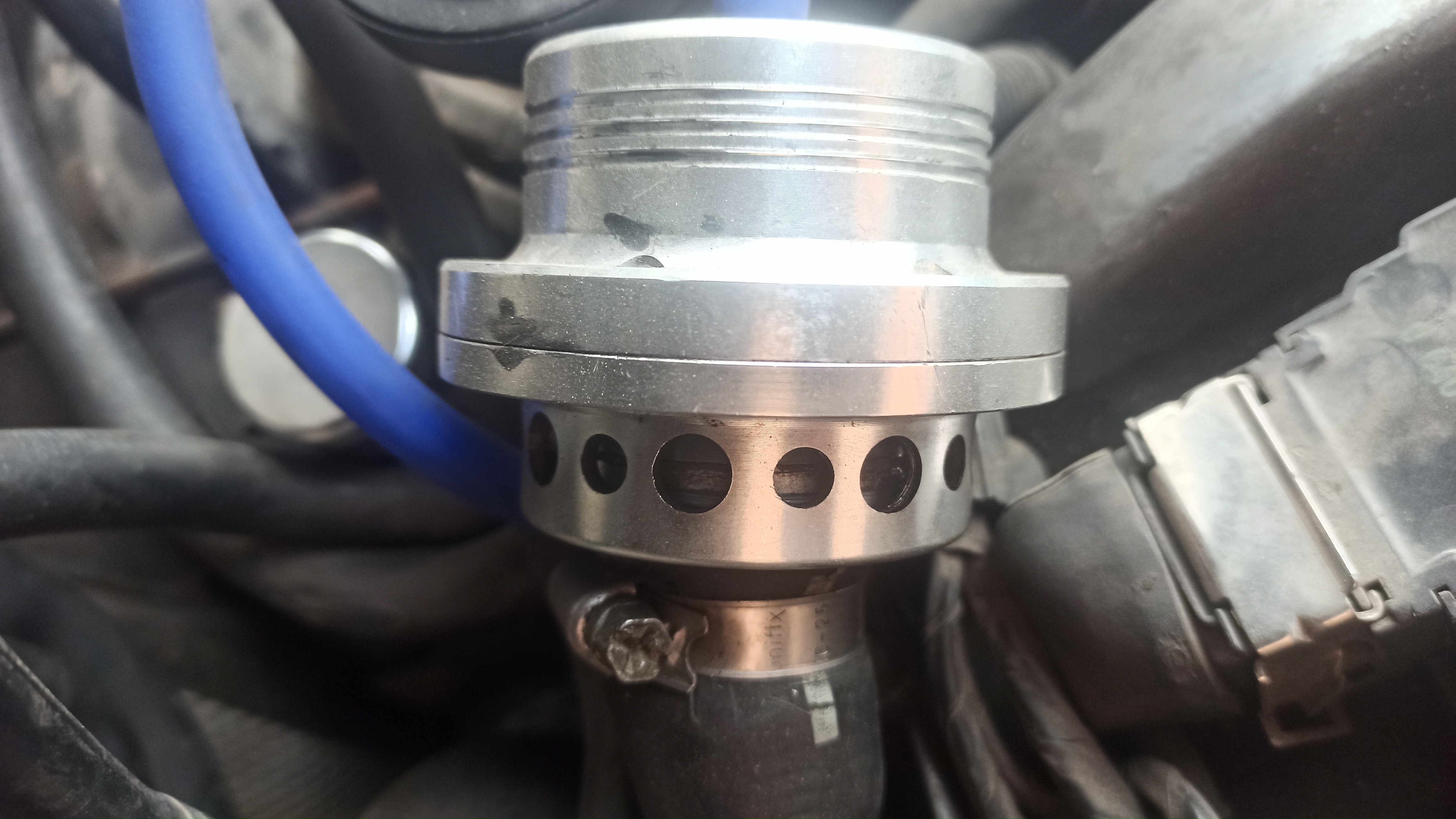 Направих клипче и снимки на блоу офа. Към края на клипа се чува по добре как преди да разтовари се чува да изпуска налягане и достига 0.2 бара. На Бууст метъра след нулата е написано 0.5, надявам се да успеете да видите до коя чертичка достига. Не съм я настъпвал да вдига високи обороти, защото няма смисъл достатъчно е да се чуе как изпуска.