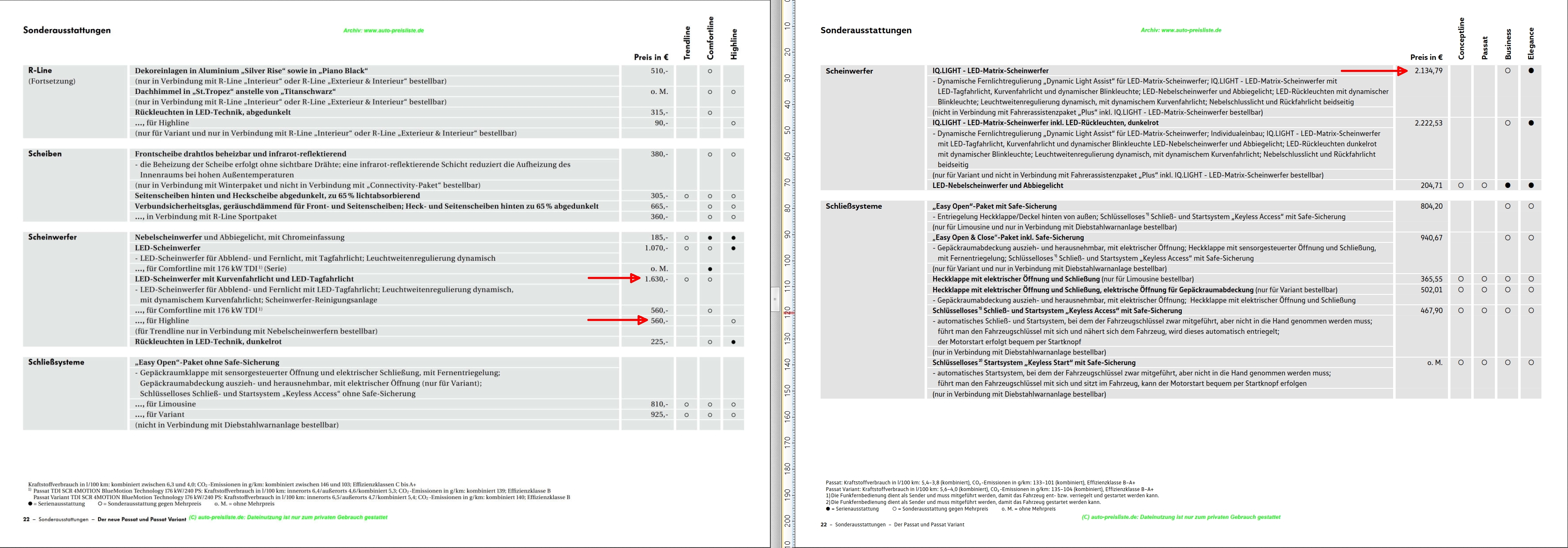 Надявам се тенденцията да става ясна и да, няма смисъл на опция за 150 евро да се търси поскъпването, затова взех под лупа "по-сериозните" позиции. Освен това прави впечатление, че масаж на седалката на шофьора в българската конфигурация е 400 лева надценка, а в немските каталози е включена към ЕргоПро седалката.