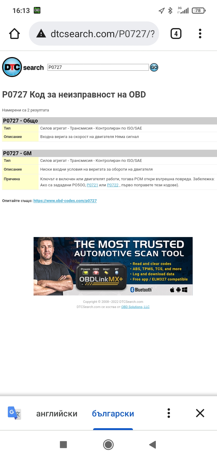 грешка р 0727 силов агрегат- трансмисия контролиран по ISO/SAE