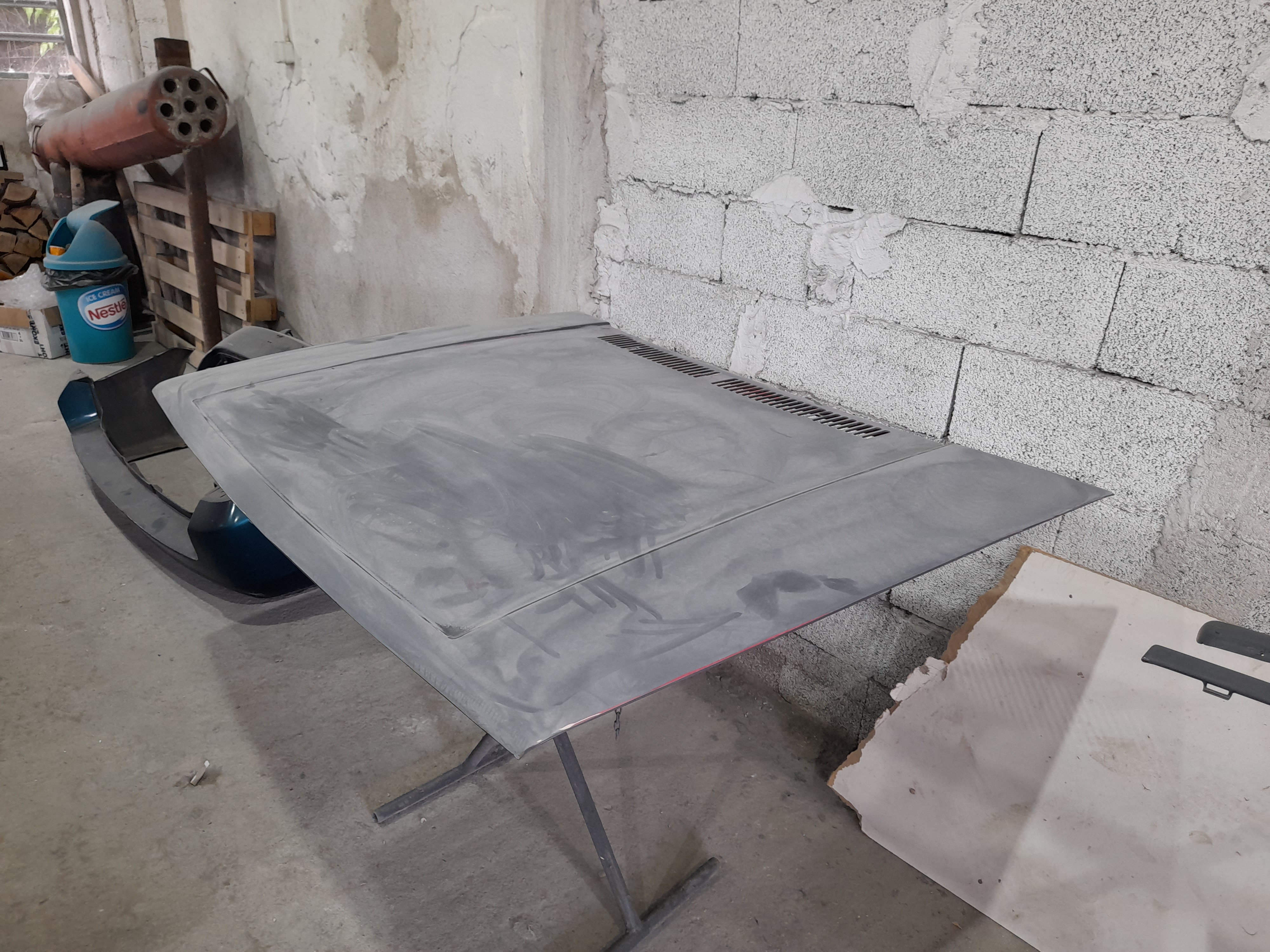 След това отиде за боя на преден капак и броня но в последсвтие се направи и гти пакета защото беше в ужасно състояние свали се подготви се за боя мина и през пластмасова заварка че по предните имаше малко забележки и по праговете също