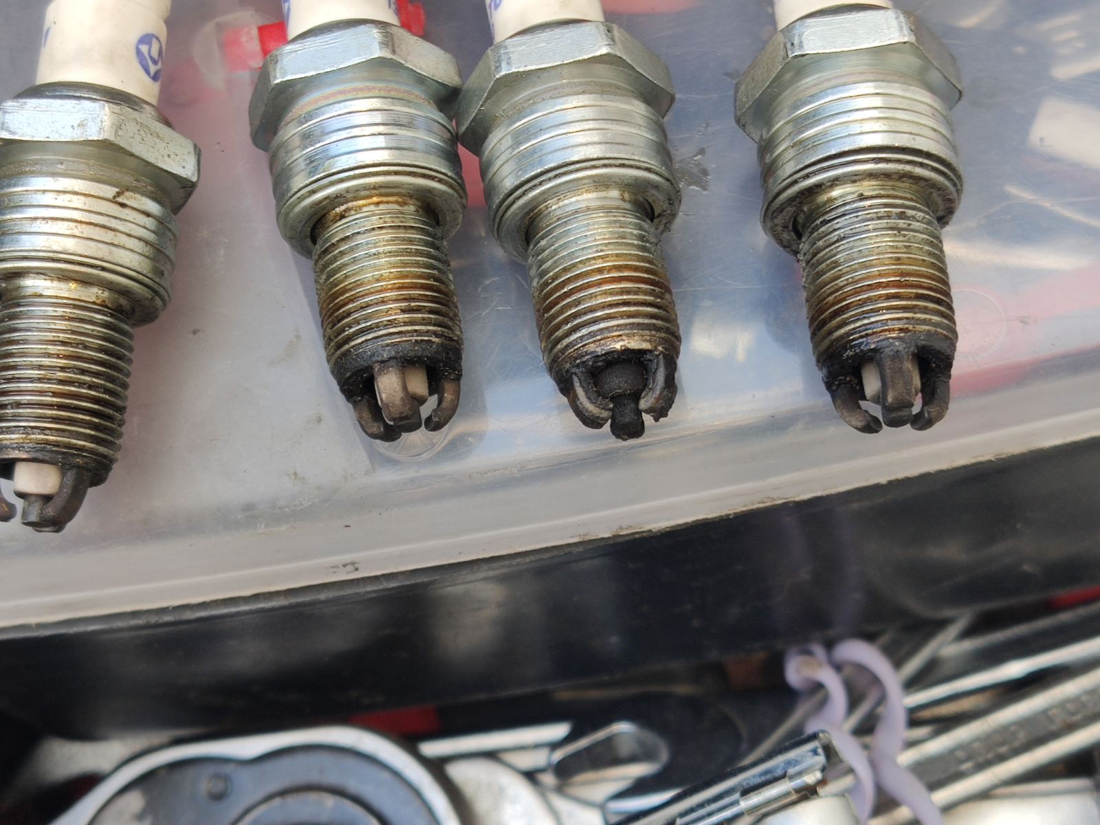 Взех свещи Denso - 1 полюсни, демонтирах Brisk-а и сложих Denso-то. Това, което видях обаче беше масло около дросел клапата, в улея между буксата и дросела имаше масло. При вадене на 1 от свещите установих сериозен нагар, което е било причина за губенето на мощност. Освен това и разхода на гориво в последните 2-3 седмици беше се вдигнал. Колата се кара предимно градско и на къси разстояния, макар да има пътувания на дълги разстояния. Няма съществен разход на масло, може би не повече от 300мл на 2-3К километра.