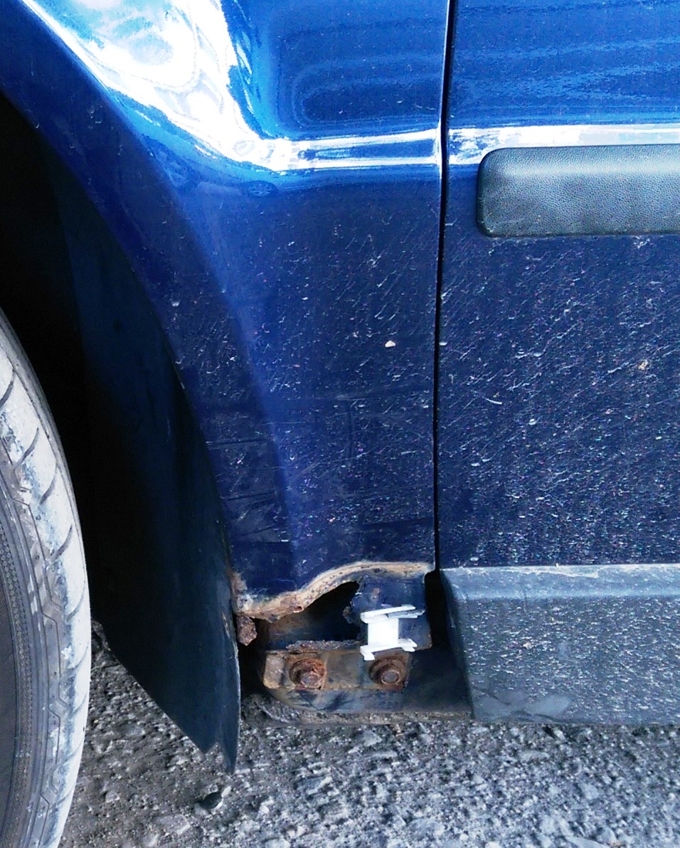 Предстои ми да обработя ръждата по предните калници. Ниско долу, където от вътрешната страна се събират боклуци.