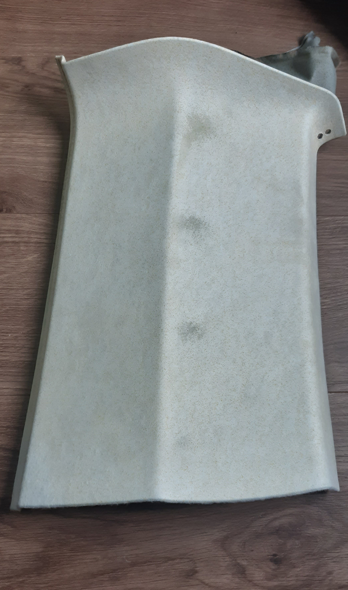 За кво ти е там плат с дунапрен ?Още повече ако е ако залепнало няма да се махне и вероятно може да счупиш детайла ,залепяй плат върху плат ...тези лепила хващат здраво и няма махане .Дунапрен се слага по тавана за шумо и топлоизолация ,на тия кори не ти трябва .Аз така бих го направил