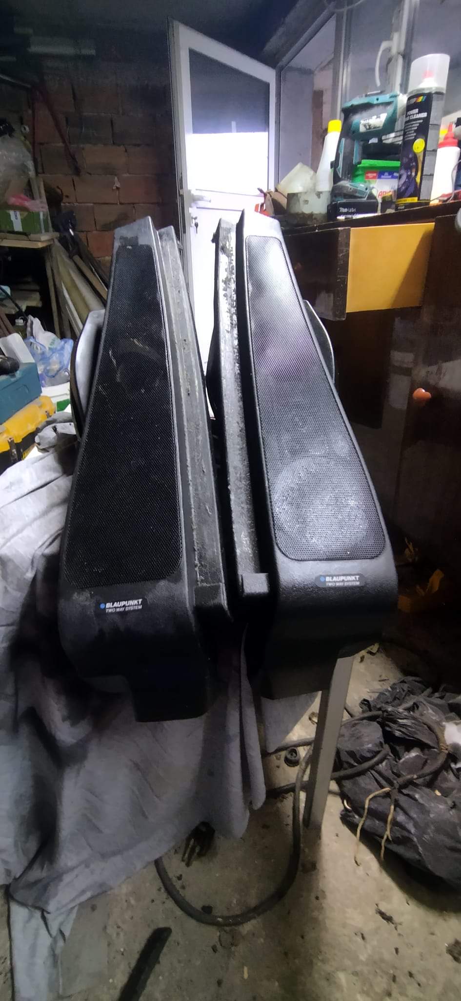 и имат мръсно по решетката. Важното е че имат колони и пищялки. Вързах ги през усилвателя и това ще е с музиката. Имам радио "alpha" и ще го бодна. Не ме плюйте,че не ги изчистих,но другият месец ще пера стелки,мокети и ще чистя кожата. Сега съм беден.