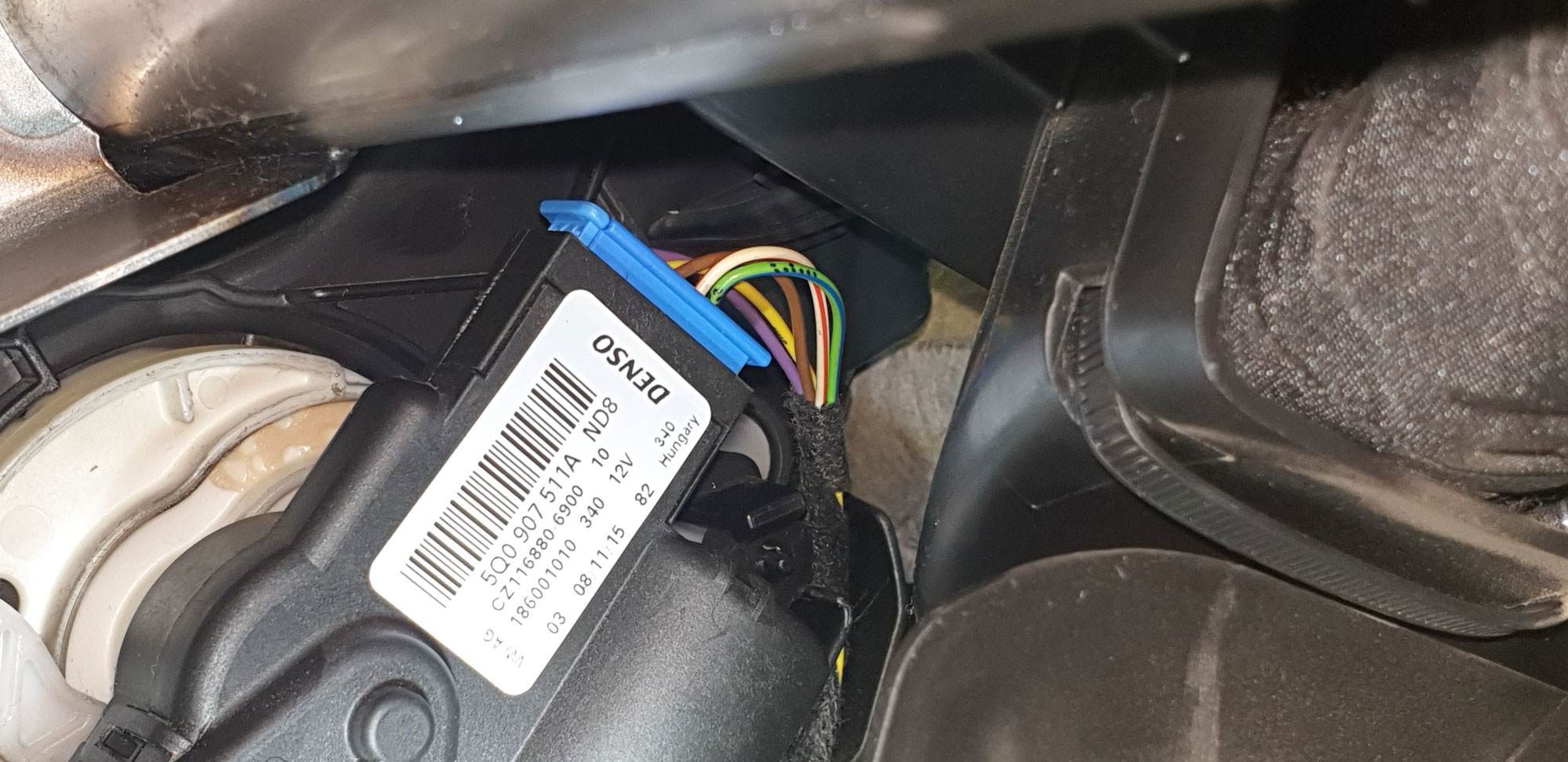 Тази пролет забелязах, че клапата за въздушния поток, която отваря за изсушаване на предното стъкло не работи и при дъжд не можеше да се изсуши добре предното стъкло. Свалих жабката и моторчето (5Q0907511A), което я върти, но моторчето си работеше. Свалих и пластмасовата част (като кръг с канали), която върти моторчето, но не видях нищо счупено или износено. При движение с ръка, сякаш не вървече много гладко и на места искаше малко повече усилие да бъде завъртяно.