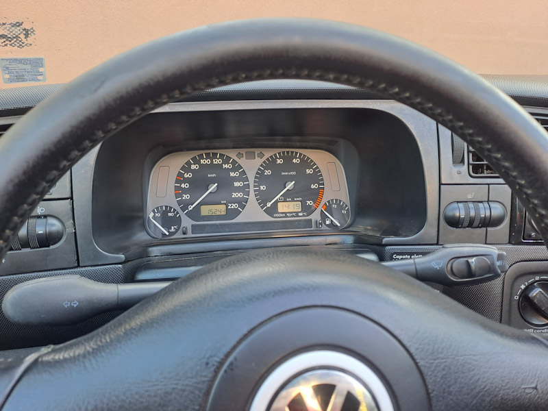 Салона също е в прилично състояние нямам много снимки на интериора намерих му километраж с борд комютър защото оригиналния километраж е сменян ще преправя този да се доближи максимално до оригиналния също така съвсем случайно намерих и копче за подгрев на седалките което нямаше как да не взема