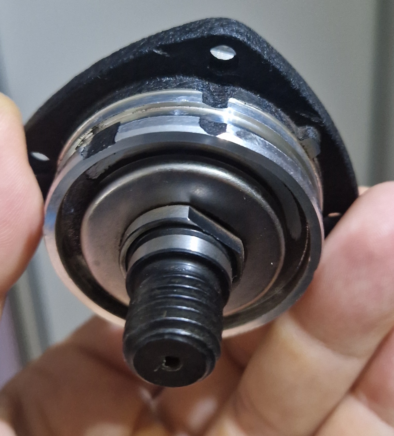 Отремонтирах си го сам и съм доволен от резултата. Намерих точния цолаж подложна тръба и с едно междинно парче желязо и чук малко трудно, но избих оста от зъбчатката. Обратната процедура по монтажа на новата зъбчатка беше по-лесна. Малко по-драматично стана поставянето на вече сглобената част към корпуса с пиньона. Първо зъбчатката не достигаше изобщо до пиньона...оказа се че от ударите, оста малко се е раздула в края и не влиза в канала с игления лагер. Ошлайфах внимателно ръбчето и всичко си пасна идеално. Имам съмнение, че тази старата зъбчатка е била с някакъв фабричен дефект. Времето ще покаже ако новата издържи по-дълго.