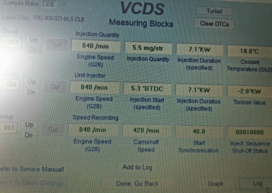 Торсион валуе на -2 на четвърти канал тоест предварение направи го на 0 чрез синхронизацията на вала или на +1 и виж пак как е.Синхронизацията на вала не е добре ако не знаеш как да я направиш питай ще ти кажа щото е доста обяснение,тази синхронизация влиае и определя милиграмите на празен ход както и променя отклоненията на дюзите ако има такива.