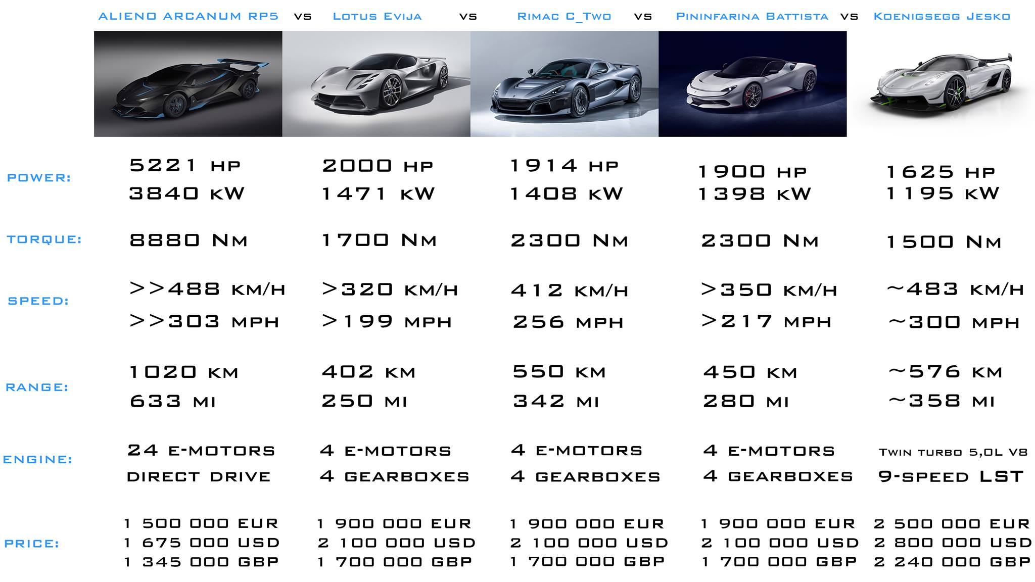 Ето техен маркетингов материал спрямо другите електрически хиперкари