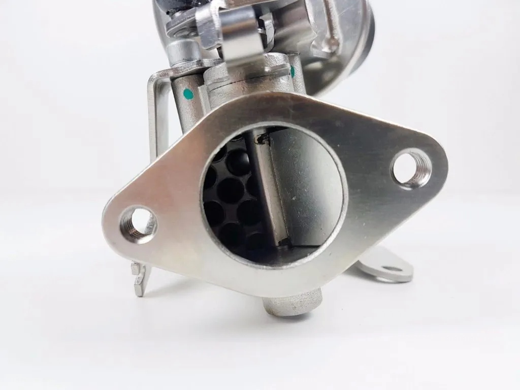 Клапаните имаха съвсем тънък слой сажди - нищо което би попречило на работата, отворих единия - всичко вътре си беше наред, пуснах ток към електормотора и калапана се отваря и затваря без проблеми. От страната на тръбата за изгорелите газове имаше малки люспички от сажни до нищо фрапантно.