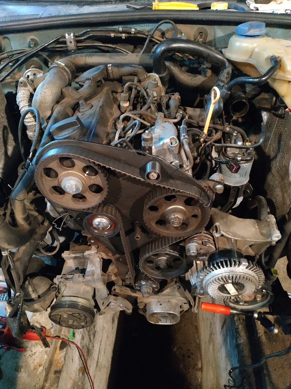 Заводския ангренаж го смених на 158000, макар че по сервизна книжка му дават 210000. Малката ролка горе шумеше много, другата малка ролка също, но не толкова. Семеринга на коляновия вал беше протекъл, водната помпа също, макар и съвсем лекичко. В завода така бяха зацепили ремъка, че беше почти невъзможно да се вкарат двата щифта и блокиращия гребен на коляновия вал заедно. Тогава реших да го сменя, защото ролките се чуваха, особено сутрин.