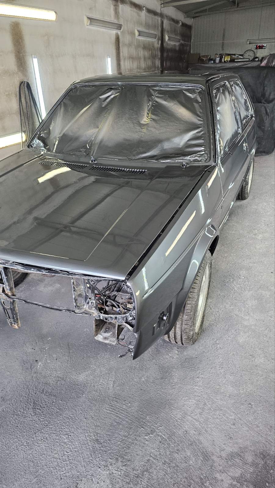 Доста време мина. Реших, че тази кола ще се пребоядисва. Реших, че ще изкарам двигателя, защото исках предните две греди, които го държат да се боядисат прахово както и основата над тях, дифузьора на водния радиатор и още няколко дреболии. Отделно имаше ръжда под акумулатора и рога беше одран от свалянето на скоростната кутия преди няколко години.