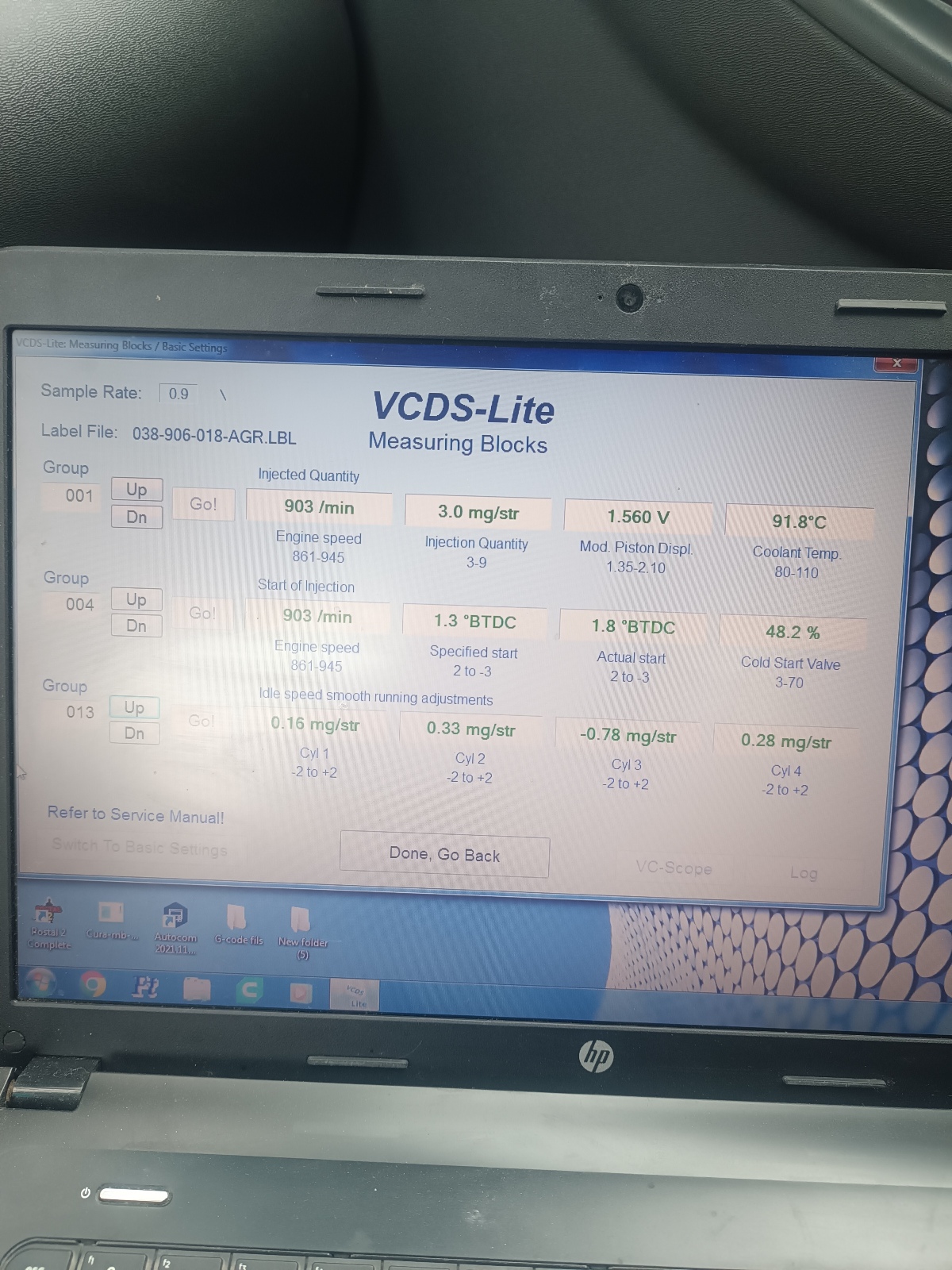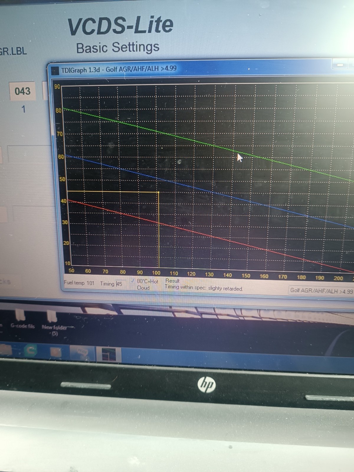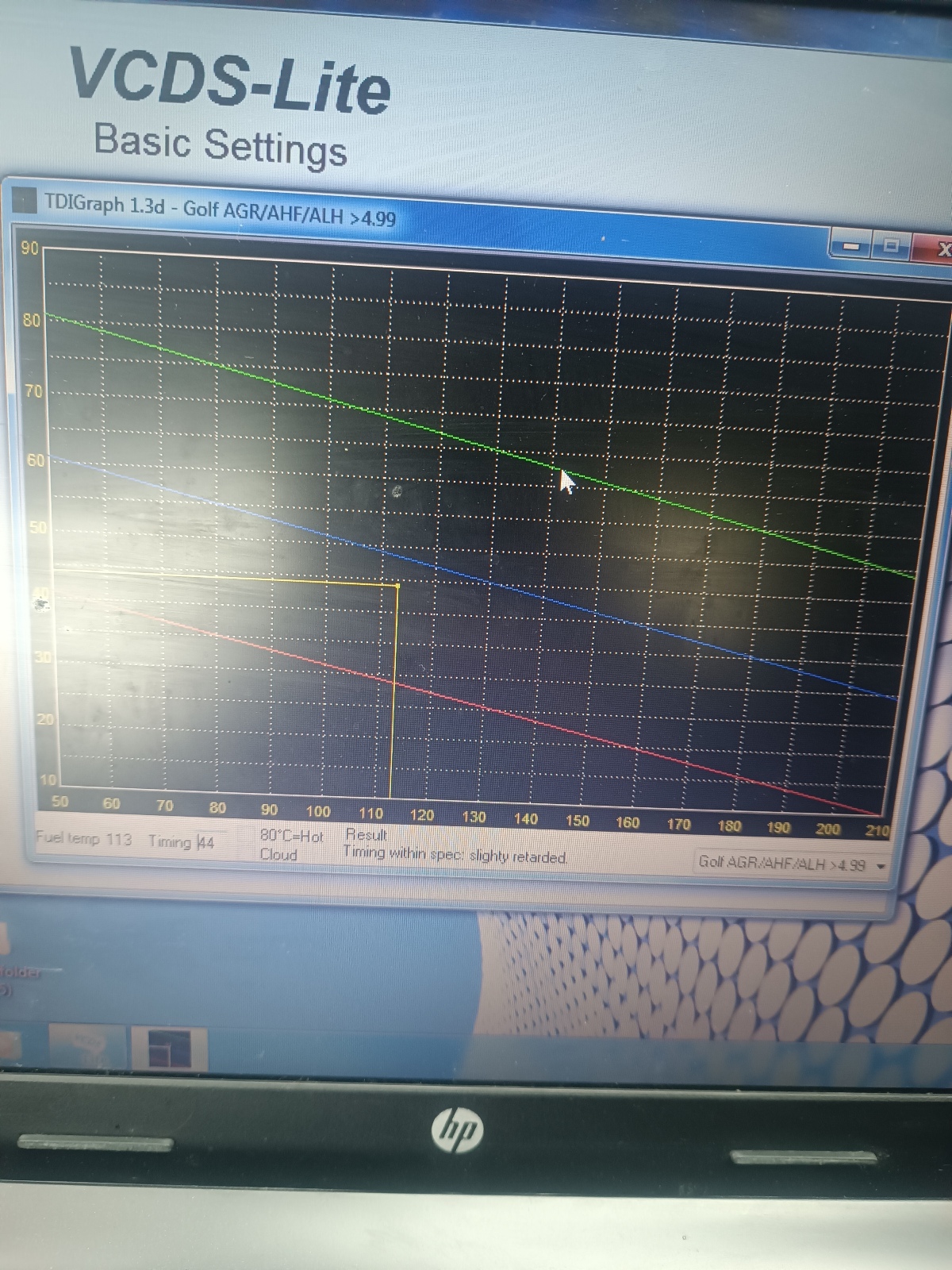 Ами на закъснение е.На измервателните канали се вижда,че е наваксана с 42% работа на авансатора.Но,то и така е добре защото в даден режим компютъра иска закъснение.И още нещо -колата трябва да е загряла и да сложиш отметка долу в квадратчето 80° Hot.