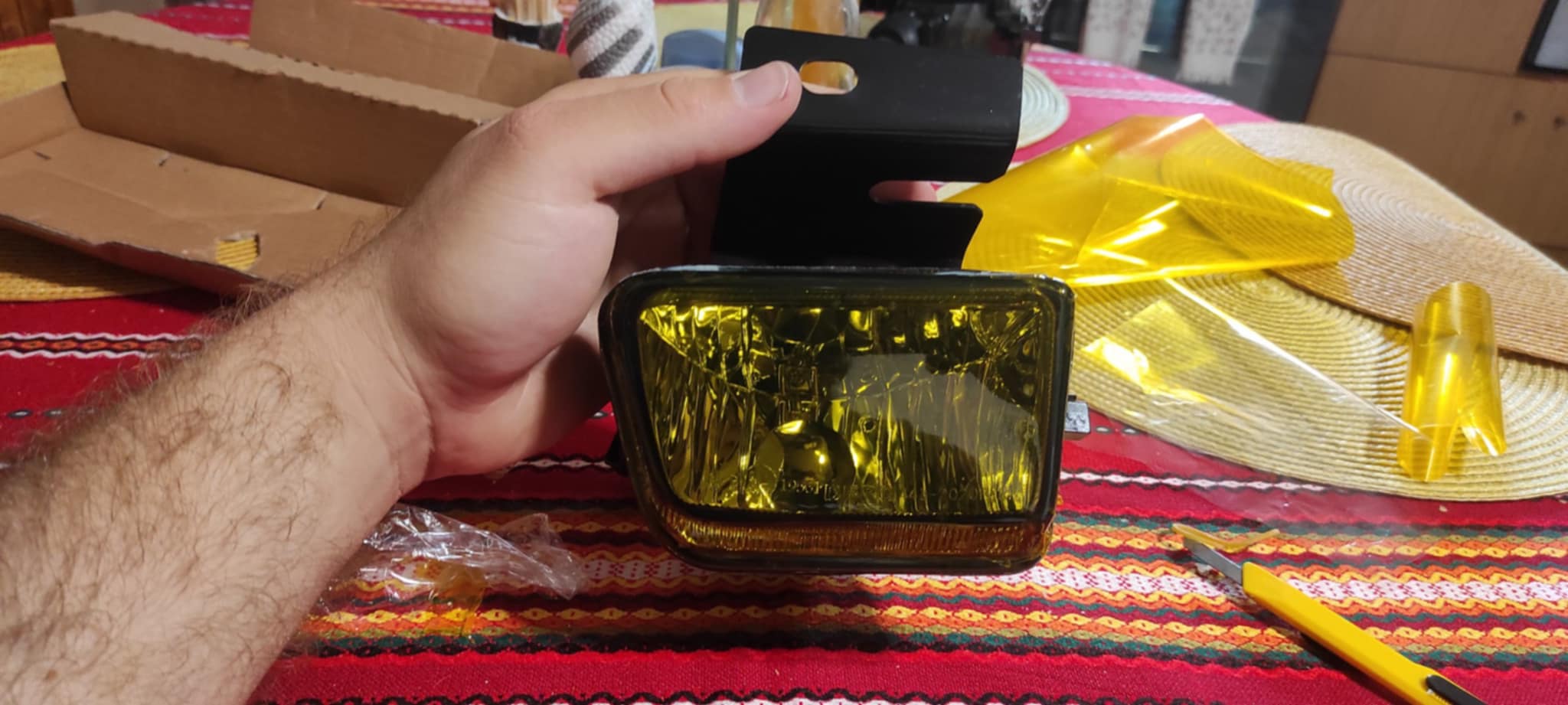 Моите уважения, но фолиото филтрира синия спектър. Мястото му е не на фаровете, а пред очите на шофьора. Много тъпа идея, особено когато лампите зад фолиото не са халогенни, а някакви други.