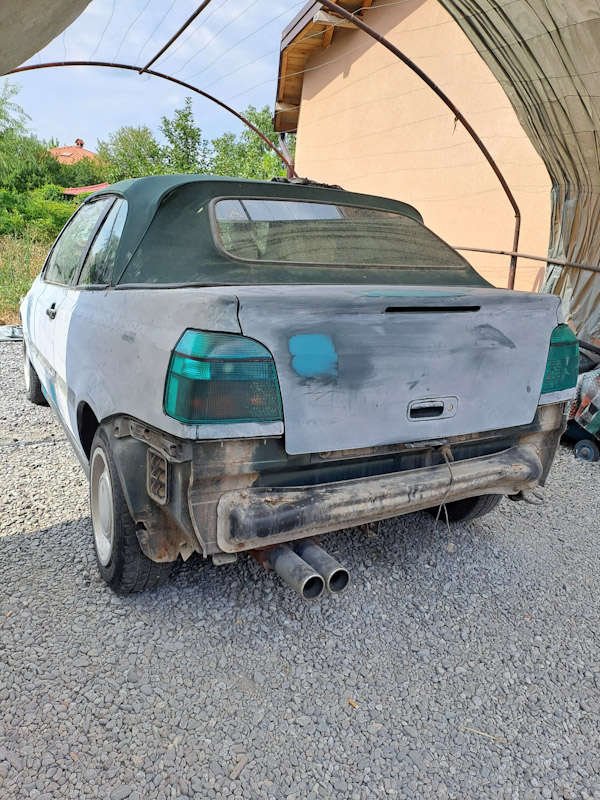 Здравейте малко да раздвижа темата какво се случва с голфчето. Има дооста свършена работа по него в през изминалата година колата беше разглобена изкърпена и цялостно боядисана почти цялата предница се смениха се двата калника очиларката предна броня фаровете също се смениха защото повечето крепежи бяха счупени и липсваха пода също бе изкърпен защото излезнаха дооста дупки намериха се дъна от кола донор защото нови неможах да намеря дясната врата също бе сменена защото е удряна и имаше кит който се пукаше и падаше просто нямаше смисъл да се прави също така случайно намерих зелени стопчета в много добро състояние нямаше как да неги взема ето и малко снимков материал