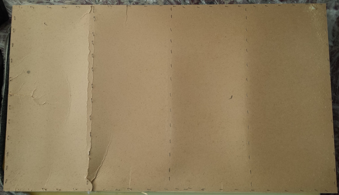 Това което се вижда е някакъв фазер с дебелина между 2,5мм и 3мм. Донапрена беше някъкъв много мек. Поръчах една дъска със същия размер и с дебелина 9мм както и нов дунапрен сгобих го и вече няколко месеца е значително по добре ситуацията.