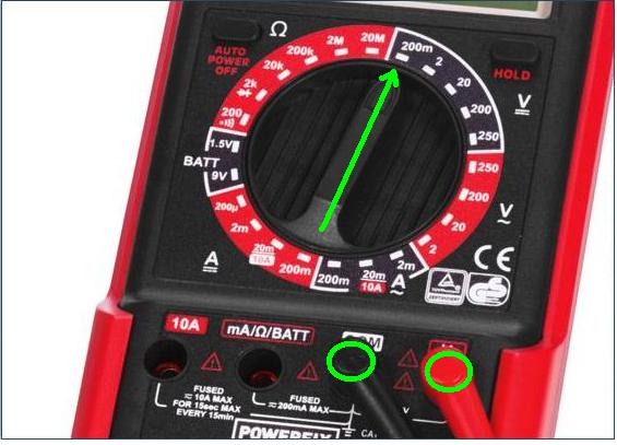1.(ГРЕШНО) Разкачвате кабел от клема на акумулатор и след това да свържете мултицета последователно;